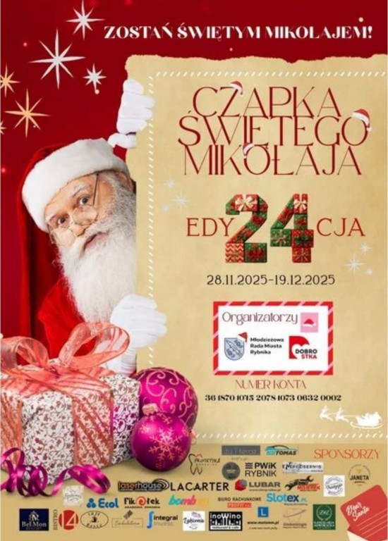 Nasze przedszkole włączyło się w 24 edycję Czapki Świętego Mikołaja organizowaną przez Młodzieżową Radę Miasta Rybnik. Zebralismy żywność z długim terminem ważności i słodkości.