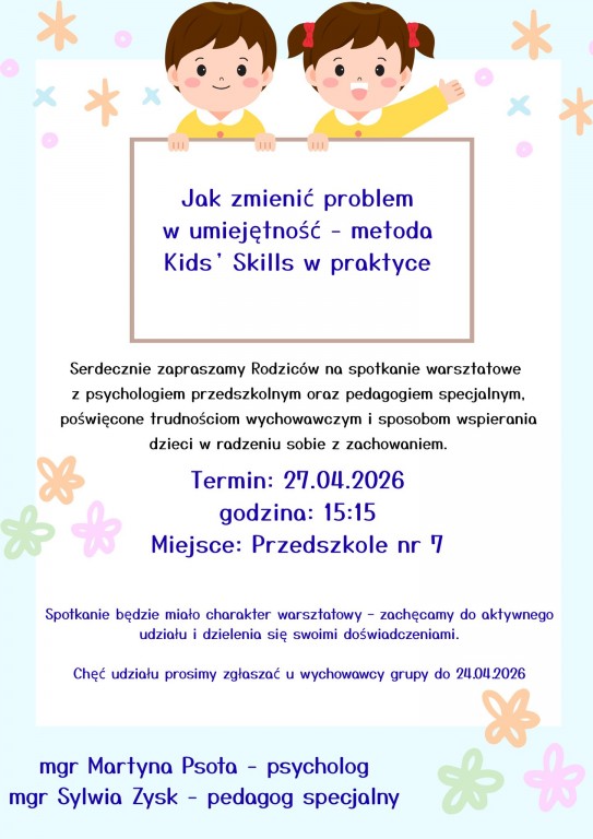 Zaproszenie na warsztaty z Panią Psycholog i Panią Pedagog