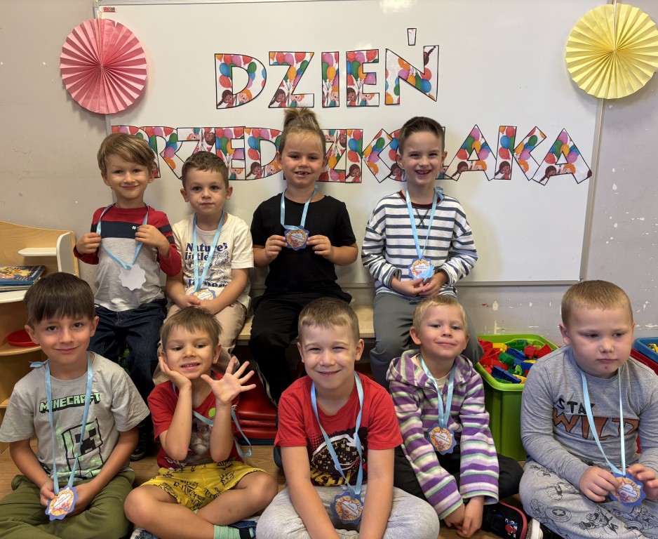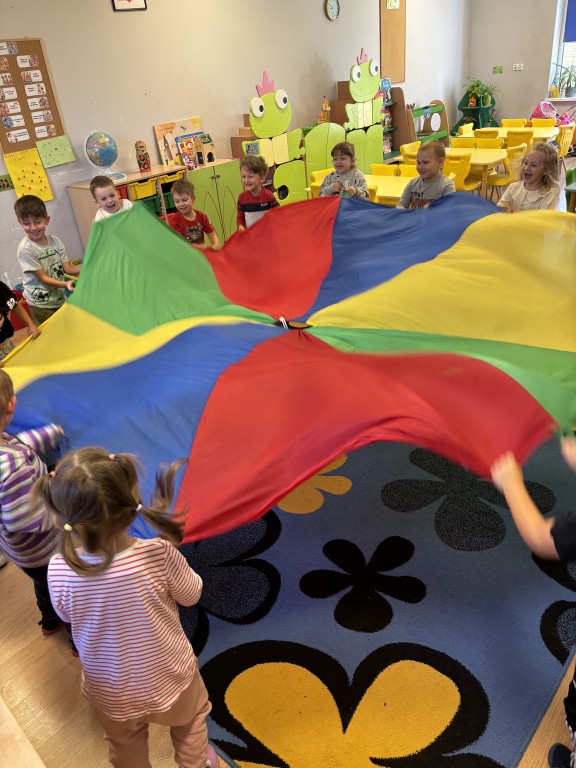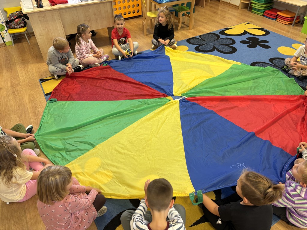 19 września obchodziliśmy Dzień Przedszkolaka. Spędziliśmy czas bawiąc się chustą animacyjną, która dostarczyła nam mnóstwo śmiechu. Otrzymaliśmy pamiątkowe medale, dyplomy i tatuaże, które były przez nas najbardziej wyczekiwane. Dzień sprawił, że mogliśmy się zintegrować i lepiej pozać koleżanki i kolegów z grupy.