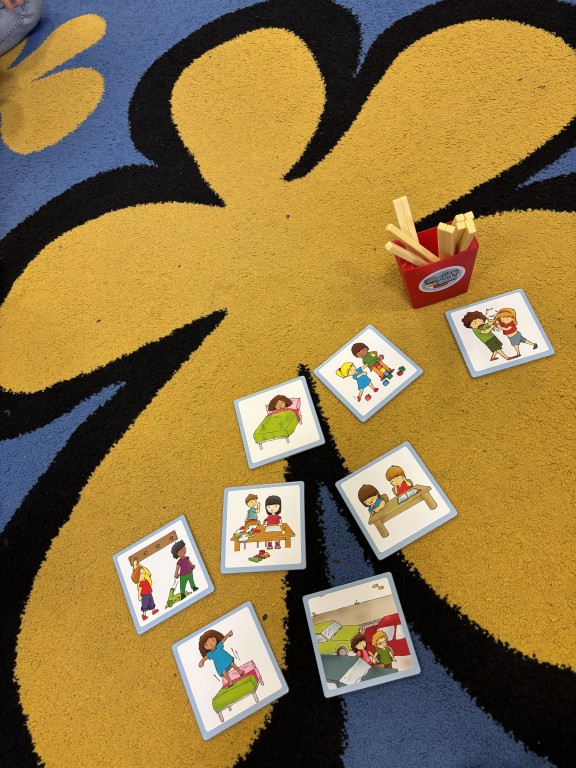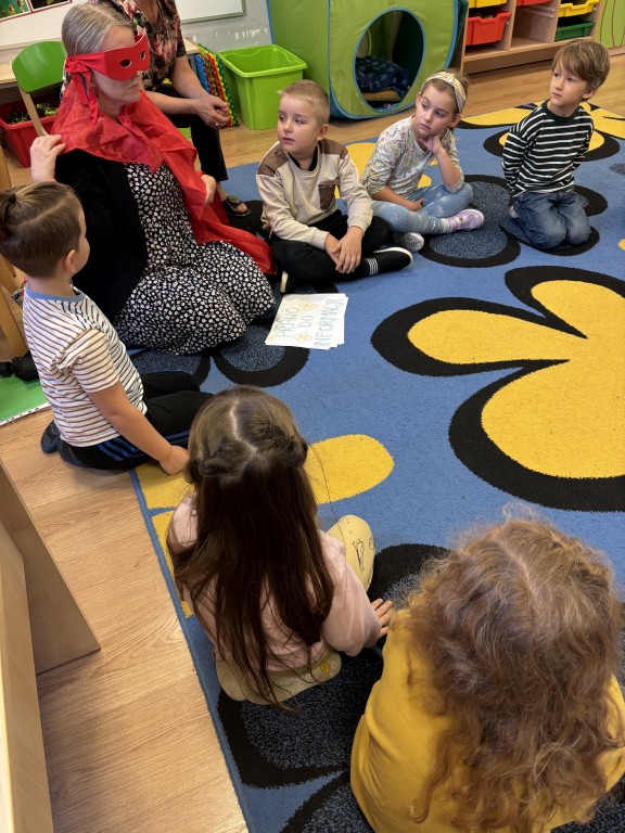 Nasza grupa brała udział w zajęciach projektowych z Pedagog Specjalną Panią Sylwią Stop przemocy. Graliśmy w grę edukacyjną, losowaliśmy karty z sytuacjami rówieśniczymi i tłumaczyliśmy, dlaczego pokazane zachowanie jest dobre lub złe, szukaliśmy rówież innych rozwiązań tych sytuacji. Pani Sylwia przypomniała nam, jakie mamy prawa i obowiązki oraz do kogo możemy się zwrócić, gdy mamy problem lub czujemy się źle. Na zakończenie poruszyliśmy temat radzenia sobie z trudnymi emocjami.