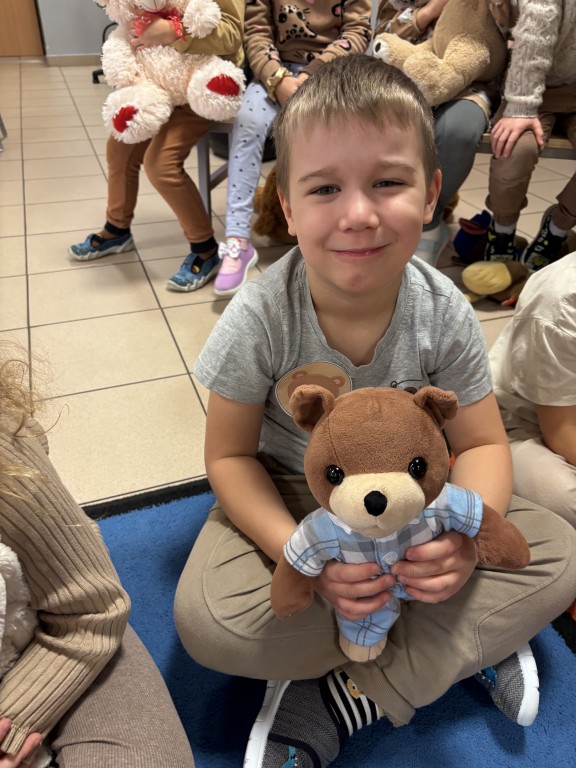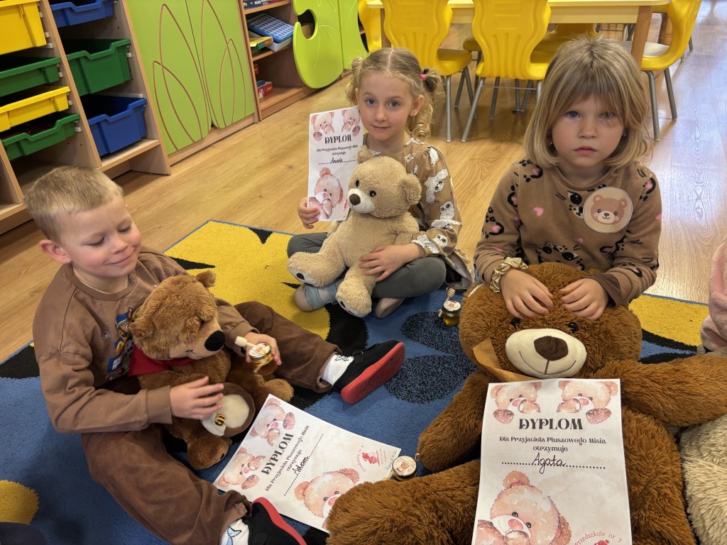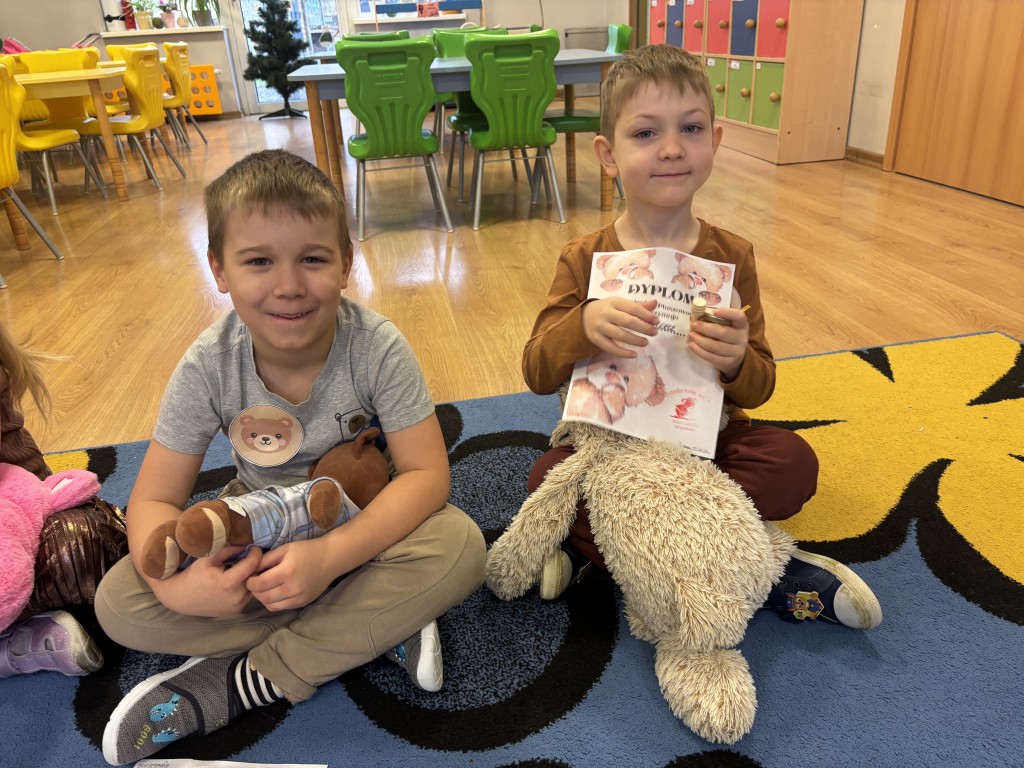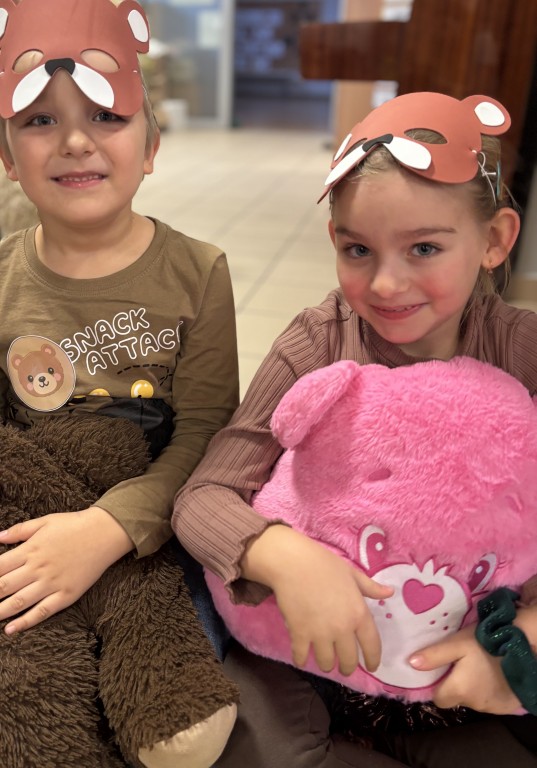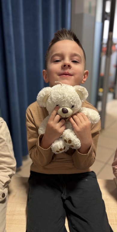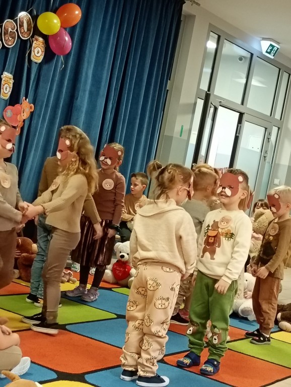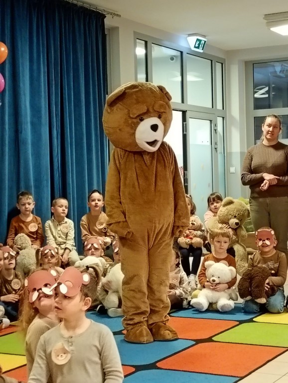 25 listopada świętowaliśmy Dzień Pluszowego Misia i wystąpiliśmy z repertuarem artystycznym z kolegami i koleżankami z grupy Sówek. Największą niespodzianką podczas występu był nasz gość specjalny duży Miś, który wywołał na naszych twarzach uśmiech. Po występie dostaliśmy miodki czyli przysmaki każdego misia, a na podwieczorek było pyszne misiowe ciasto!