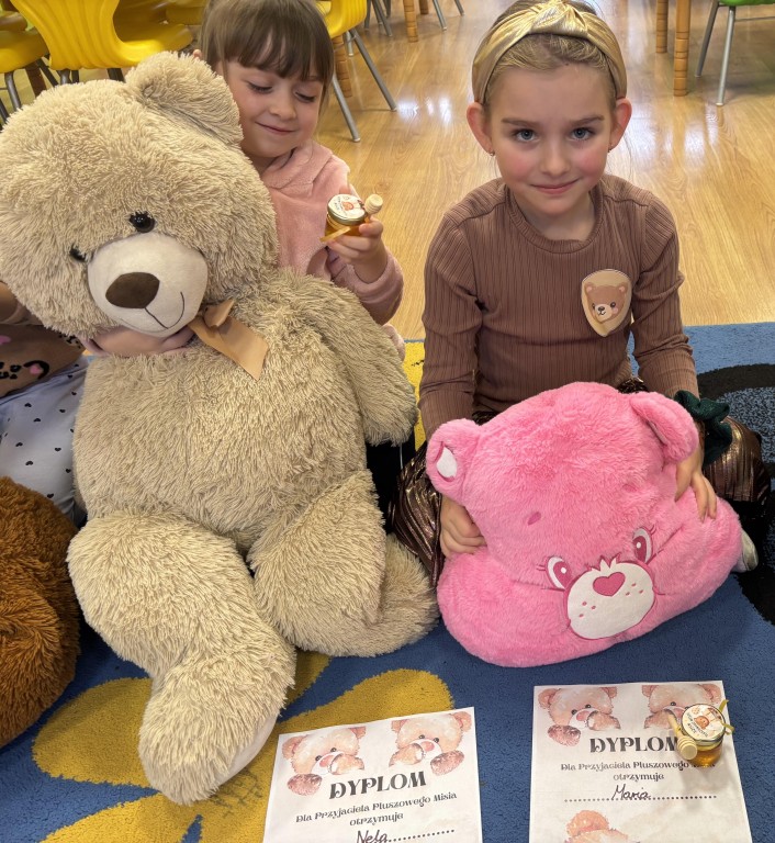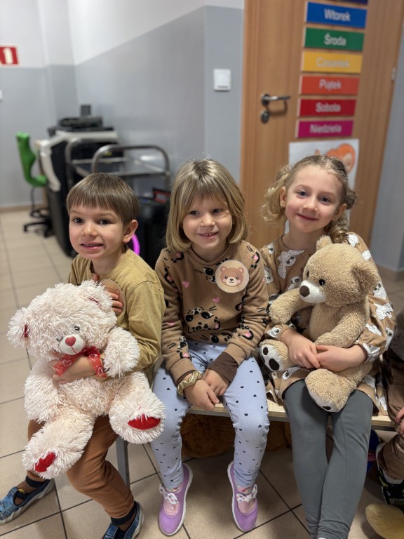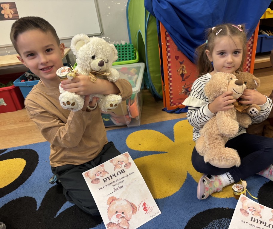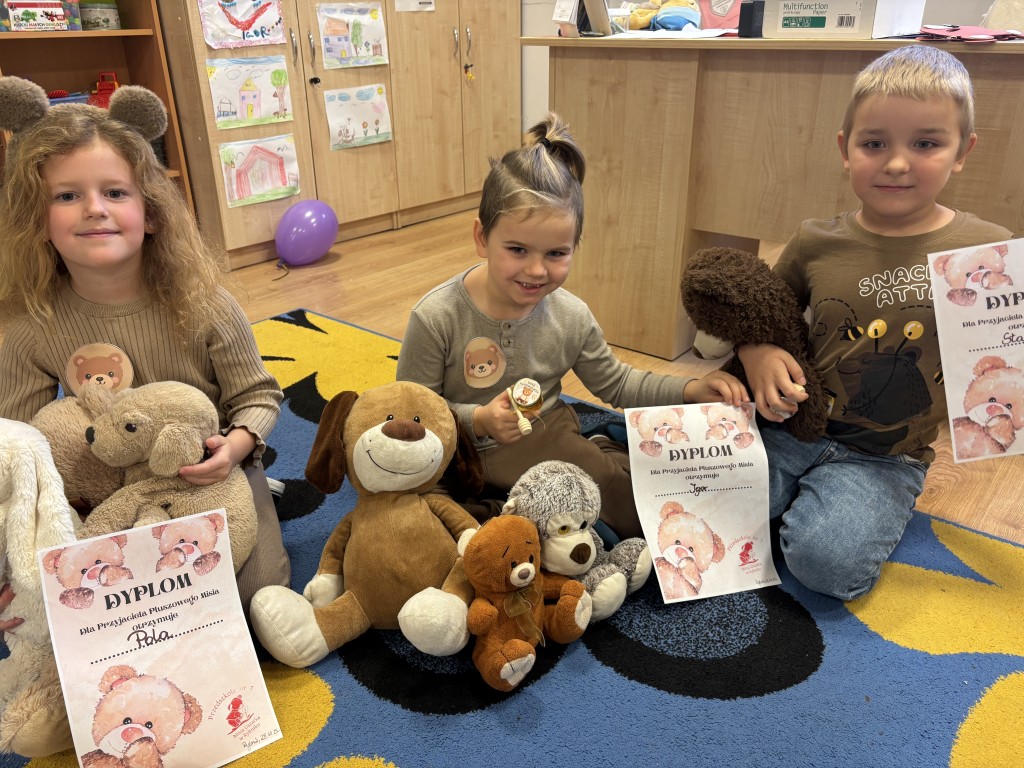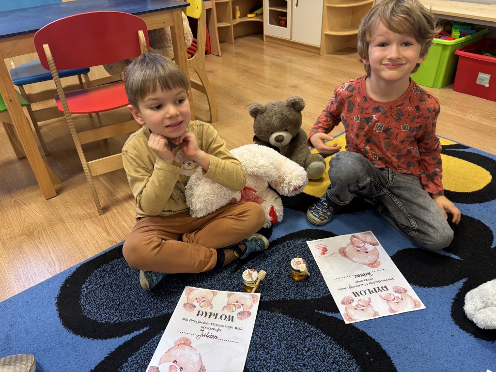 25 listopada świętowaliśmy Dzień Pluszowego Misia i wystąpiliśmy z repertuarem artystycznym z kolegami i koleżankami z grupy Sówek. Największą niespodzianką podczas występu był nasz gość specjalny duży Miś, który wywołał na naszych twarzach uśmiech. Po występie dostaliśmy miodki czyli przysmaki każdego misia, a na podwieczorek było pyszne misiowe ciasto!