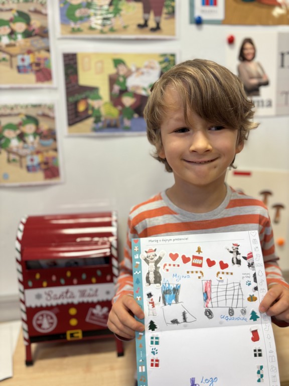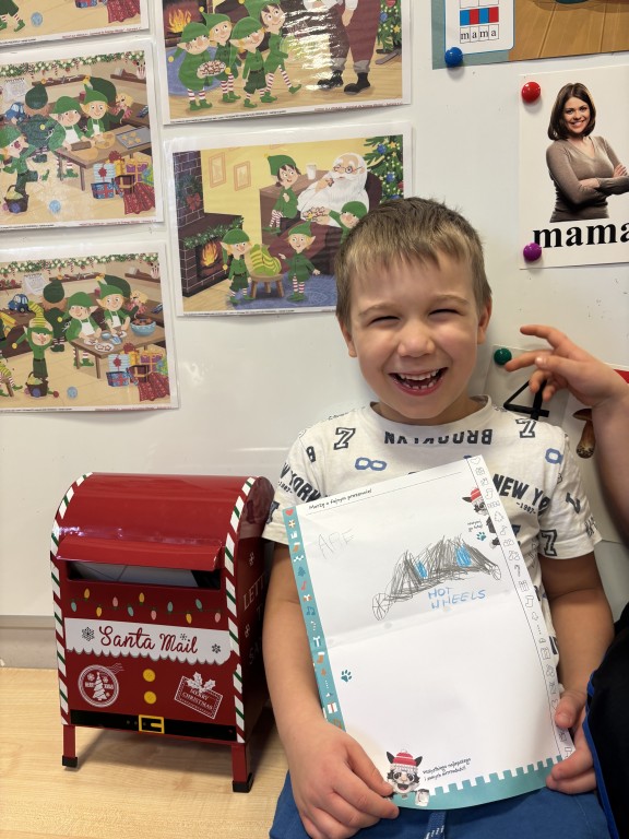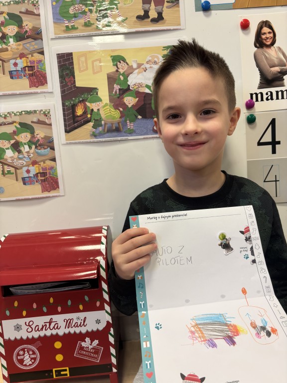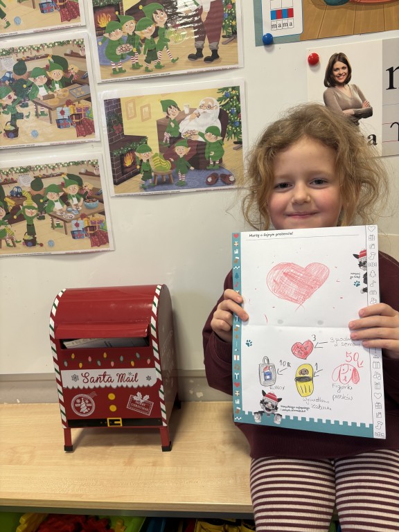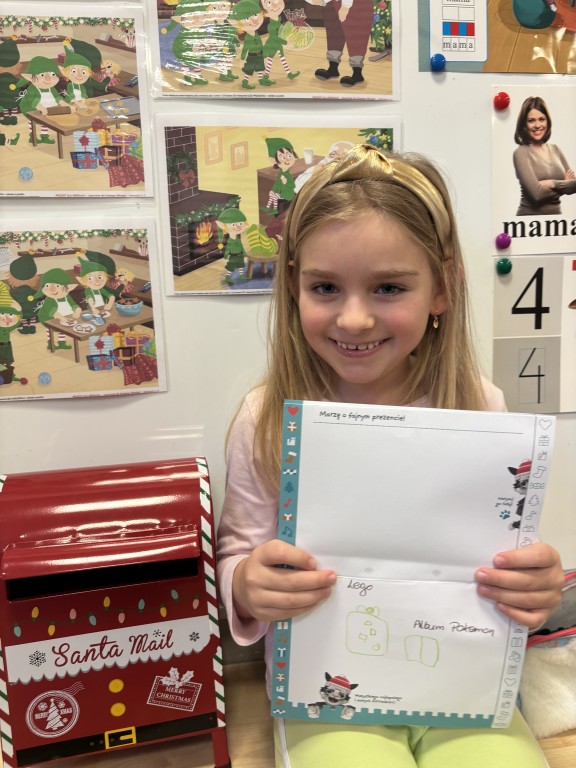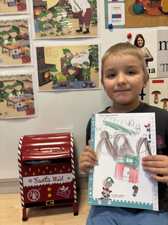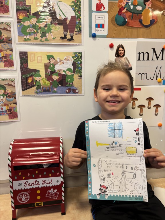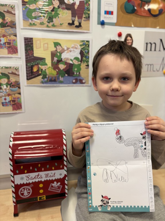 Malowaliśmy swoje wymarzone prezenty, które byśmy chcieli dostać od Mikołaja do domu i od Dzieciątka do naszej sali przedszkolnej. Wrzuciliśmy listy do skrzynki, a kiedy przyszliśmy w czwartek rano do przedszkola, to już listów nie było! Skrzynka była zupełnie pusta!