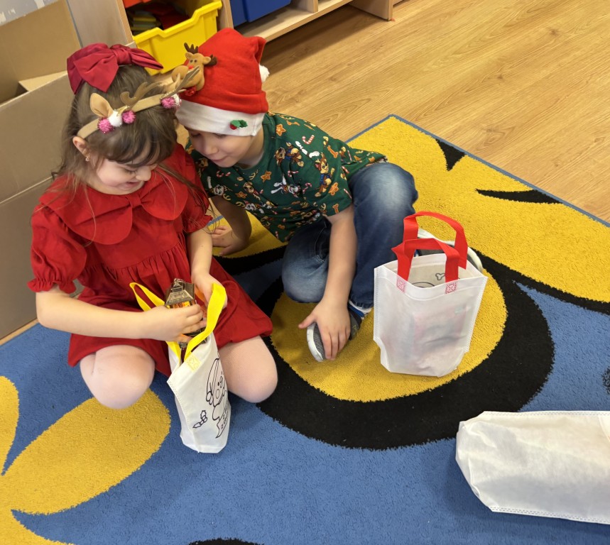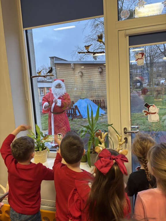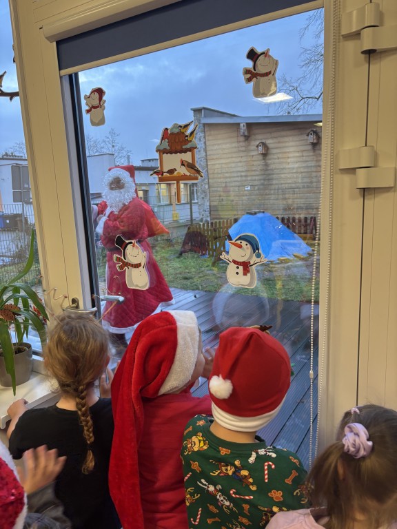 Podczas zajęć Pani nam powiedziała, ktoś chodzi po naszym ogrodzie. Był to Mikołaj! Radośnie nam machał i dzwonił dzwoneczkiem. Mikołaj pytał nas, czy lubimy chodzić do przedszkola, czy Panie kucharki gotują pyszne obiadki i czy jesteśmy grzeczni... Raczej grzeczni jesteśmy, tylko czasem nie chce nam się sprzątać zabawek, ale się poprawimy:) Dostaliśmy podarunki, które zabraliśmy do domu. To był wspaniały dzień!