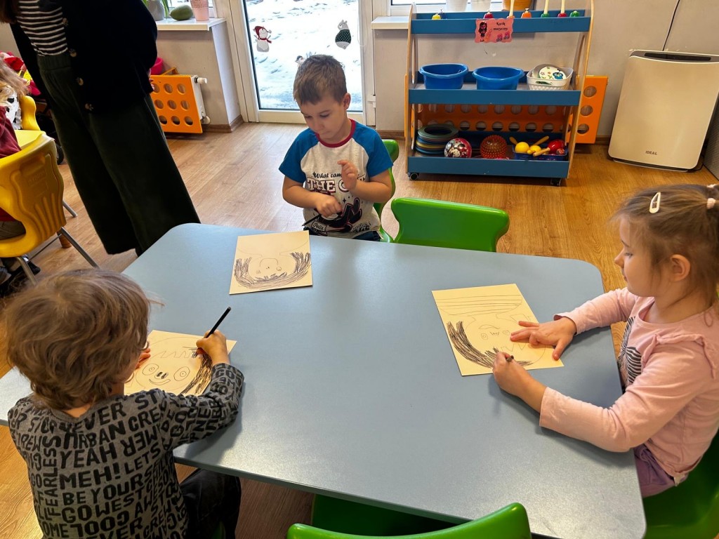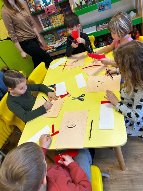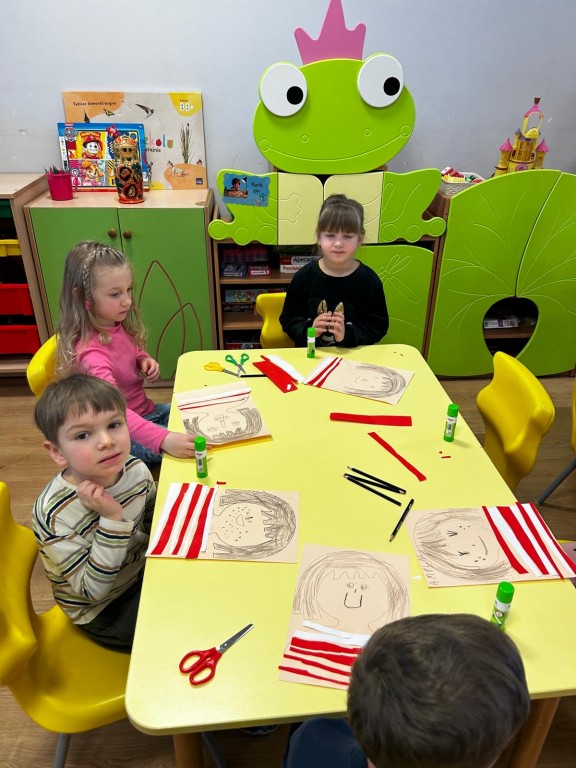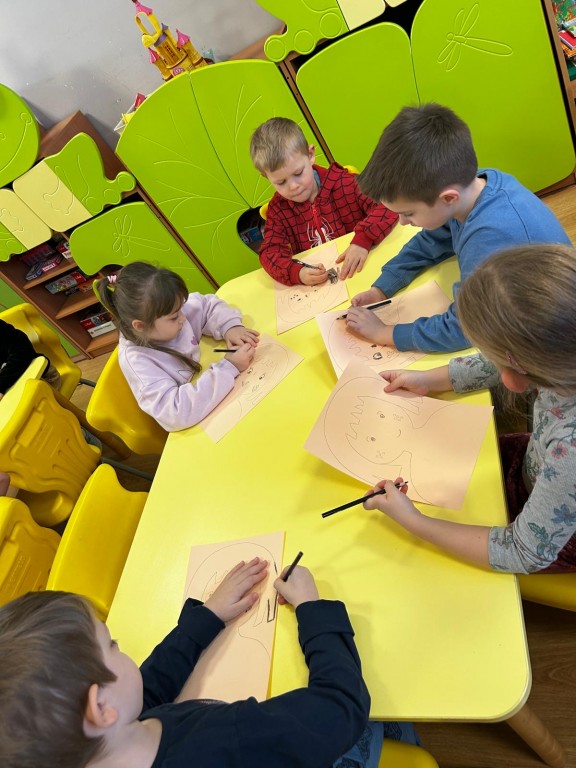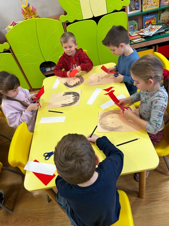przyjaciela. Po wysłuchaniu wiersza, Pani prowadzącą warsztaty opowiedziała nam całą historię bohaterki książki. Zainspirowani wykonaliśmy prace plastyczną, jaką był portret Basi. Na zakończenie warsztatów wykonaliśmy masazyk.