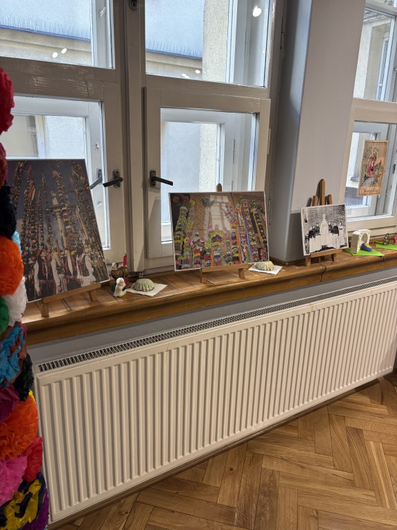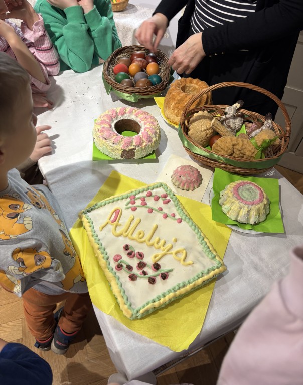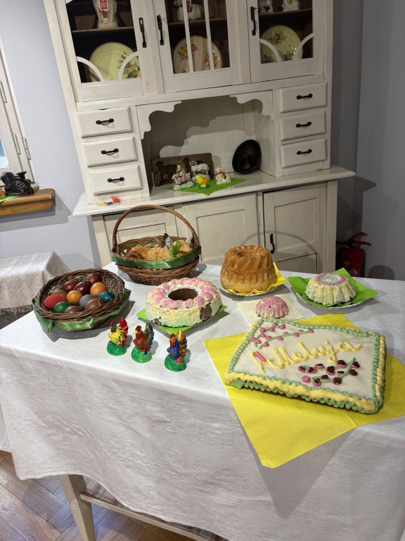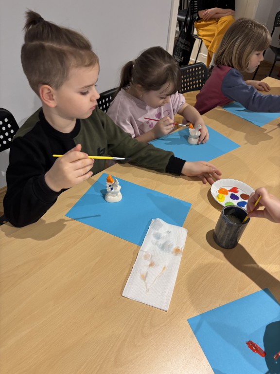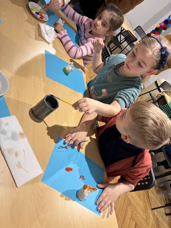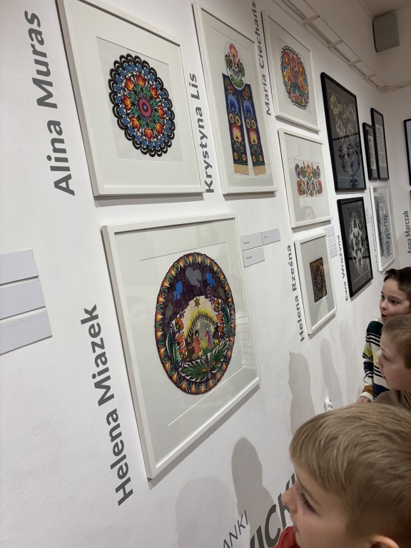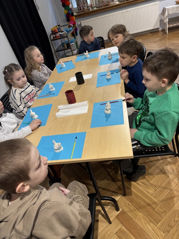 Wzięliśmy udział w warsztatach Kolorowe Święta. Wielkanocne wypieki i formy cukiernicze. Z zaciekawieniem słuchaliśmy historii wypieków wielkanocnych, oglądaliśmy różne formy oraz pięknie ozdobione ciasta. Przypomnieliśmy sobie, co wkładamy do koszyczka wielkanocnego i jak możemy farbować jaja. Pomalowaliśmy ceramiczną kurkę, którą zabraliśmy do domu. A na zakończenie wizyty w muzeum zwiedziliśmy salę z wycinankami, które zrobiły na nas ogromne wrażenie. Nawet były Koguty!