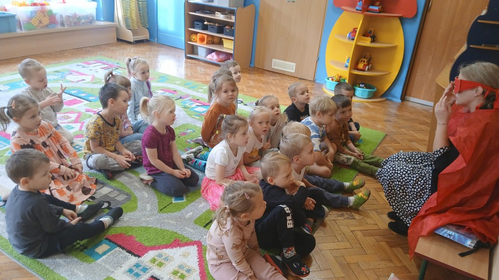 28 października odwiedziła nas Pani pedagog, która przeprowadziła zajęcia w ramach realizacji projektu „STOP przemocy”. Z Panią Sylwia zagraliśmy w grę edukacyjną „Pozytywne zachowania”, dowiedzieliśmy się jak możemy zostać superbohaterami i do kogo możemy się zwrócić, gdy mamy problem lub czujemy się źle.