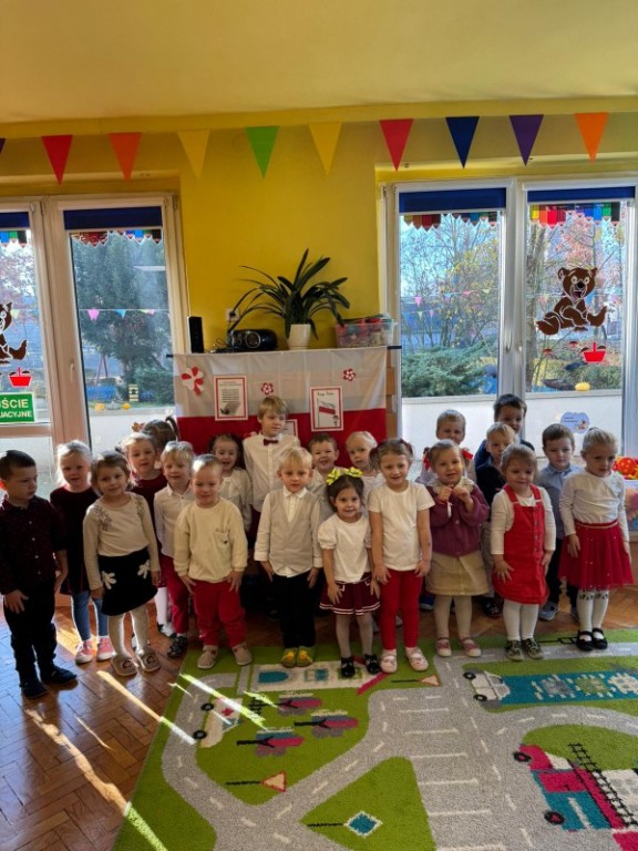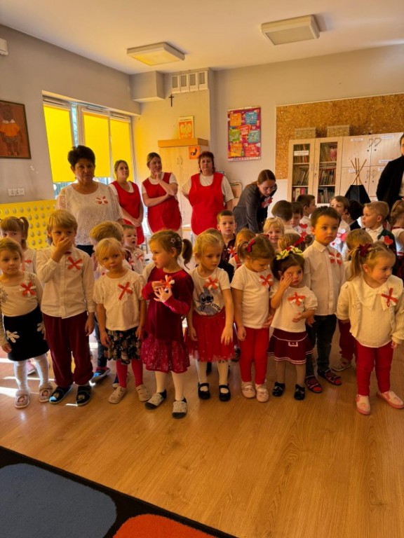 Był to wyjątkowo ważny tydzień w naszym przedszkolu, pełen rozmów o Polsce, zabaw dydaktycznych i wspólnych działań. Rozmawialiśmy o symbolach narodowych – fladze, godle i hymnie. Z wielkim zaangażowaniem ćwiczyliśmy śpiewanie Hymnu Polski oraz recytowaliśmy znany wszystkim wiersz „Katechizm małego Polaka”. Wzięliśmy udział w akcji „Szkoła do hymnu” i o godzinie 11:11 dumnie odśpiewaliśmy hymn narodowy. Dzięki wszystkim tym zajęciom mogliśmy lepiej zrozumieć, czym jest patriotyzm – miłość do ojczyzny, szacunek do tradycji i wspólnoty, w której żyjemy.