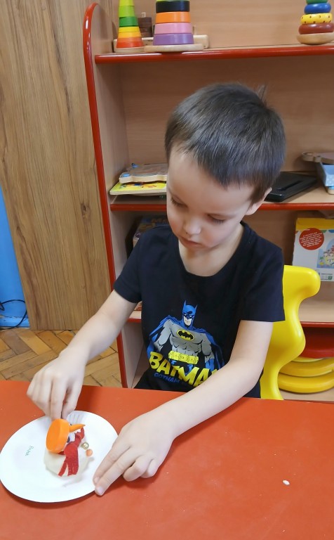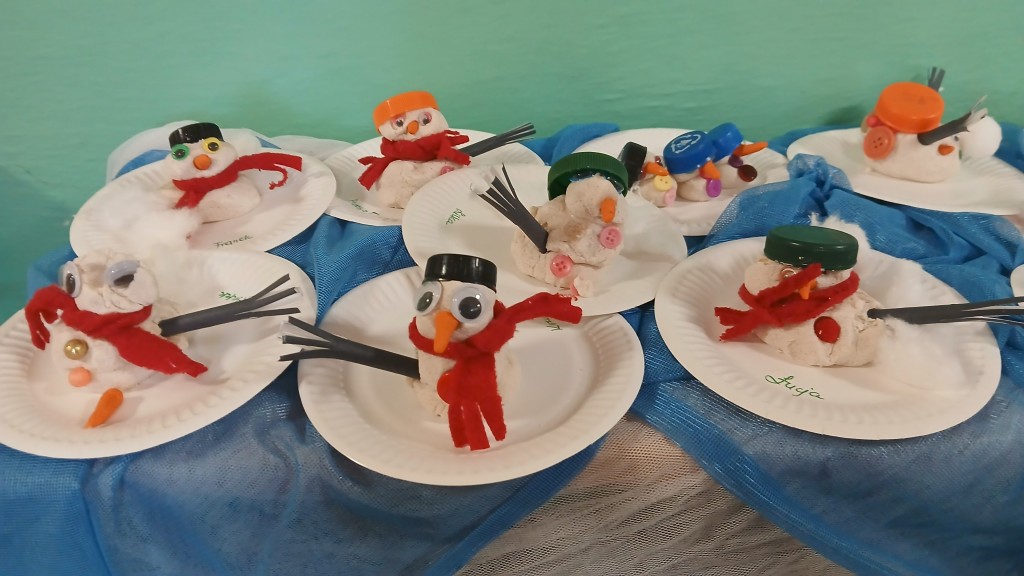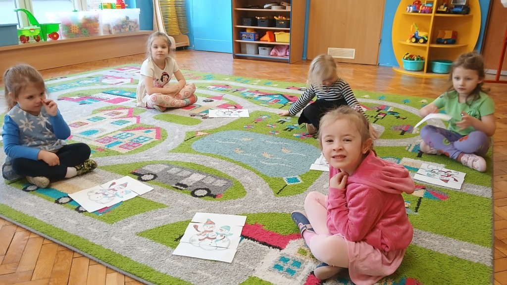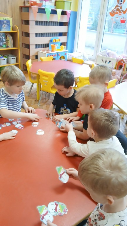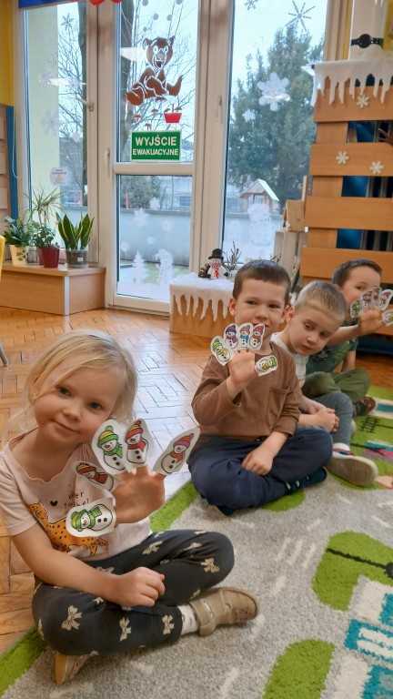 Na zajęciach nie zabrakło bałwankowych zabaw. Braliśmy udział w ćwiczeniach grafomotorycznych, układaliśmy puzzle oraz segregowaliśmy sylwety bałwanków. Kształtowaliśmy umiejętności liczenia. Uczestniczyliśmy w zabawie badawczej „Czy śnieg jest czysty?”. Ilustrowaliśmy ruchem treści wierszyka „Nasz Bałwanek”. Na zakończenie wykonaliśmy z masy solnej bałwanki.