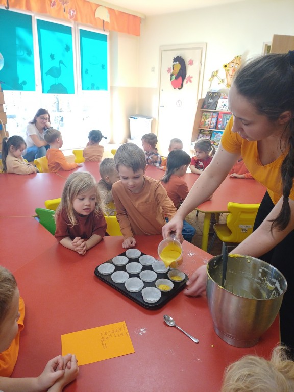 Było wesoło i smacznie, bo razem z Panią Dorotą postanowiliśmy upiec dyniowe babeczki! Bardzo się napracowaliśmy, ale było warto - babeczki wyrosły i były pyszne!