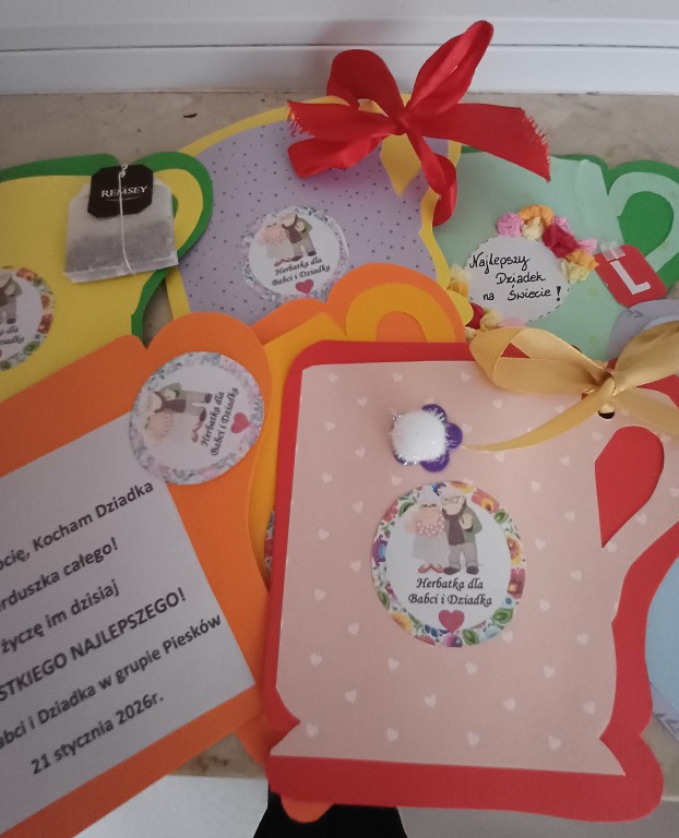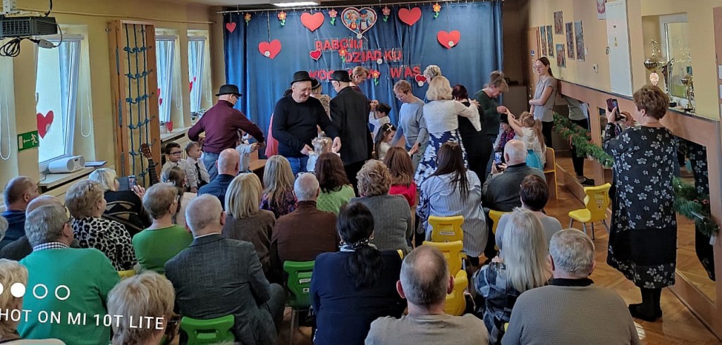 Dzień Babci i Dziadka to wspaniałe święto! Od dłuższego czasu Pieski ćwiczyły tańce, piosenki i wierszyki oraz przygotowywały najpierw zaproszenia a potem laurki dla swoich najbliższych. 21 stycznia - pięknie ubrani i przejęci atmosferą przygotowań, Pieski stanęły na wysokosci zadania i cudownie zaprezentowały się w zimowym przedstawieniu dla Babci i Dziadków. Nasi goście nagradzali występy dzieci brawami i okrzykami - to był znak, że sami chcą się pobawić i potańczyć. Znalazła sie ku temu okazja i razem z wnukami i wnuczkami tańczyli "Zimową Poleczkę", powtarzając za dziećmi: Ha,ha,hi,hi śniegowe bałwanki to my właśnie my!