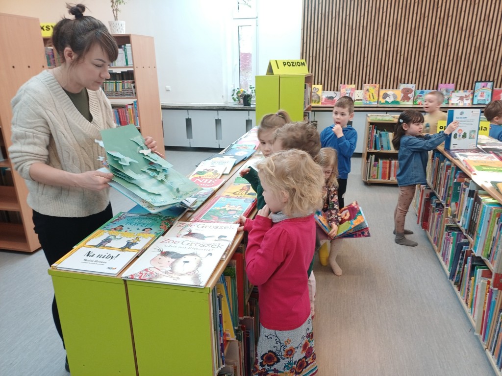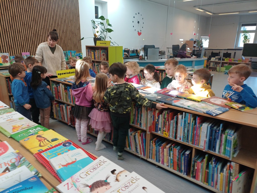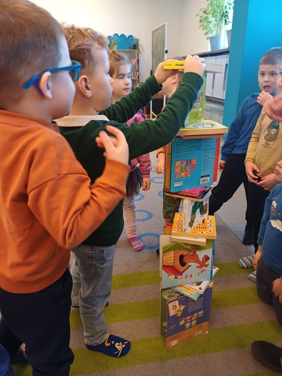 Biblioteka to miejsce lubiane przez dzieci, które zawsze dostarcza dużo wrażeń i pozytywnych emocji. W ubiegłym roku w ramach akcji "Tu Czytamy" odwiedziliśmy budynek biblioteki miejskiej, aby zobaczyć flim dla dzieci a w tym roku zaplanowaliśmy sobie zajęcia czytelnicze na podstawie książki R.Bonilla "Najwyższa na świeci wieża z książek".