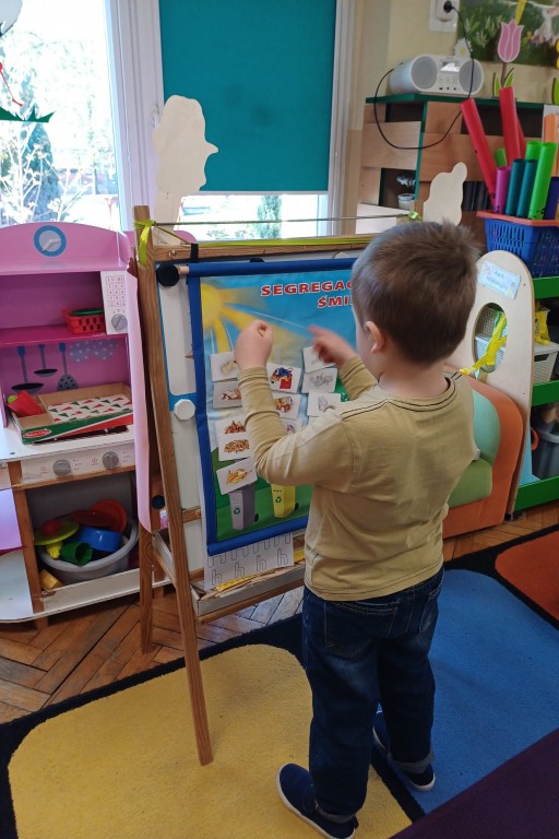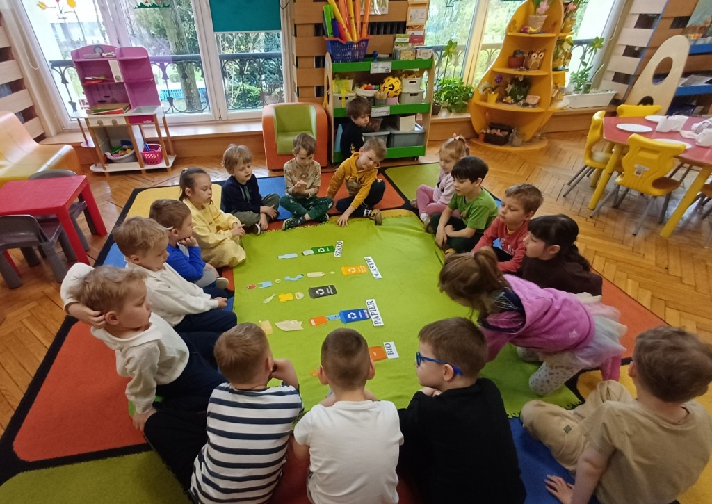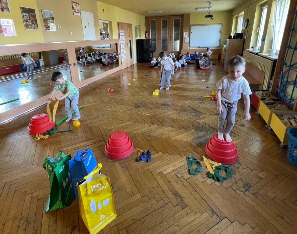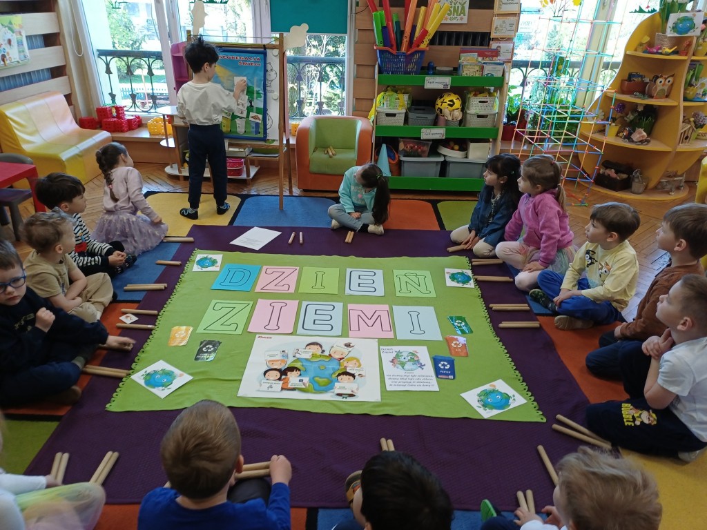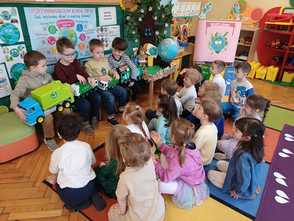 Jak co roku z okazji Dnia Ziemi cały tydzień poświęciliśmy na tematykę ochrony środowiska. Poznaliśmy zasady segregacji śmieci i recyklingu oraz rozmawialiśmy na temat odnawialnych źródeł energii. Podczas zajęć i sprzątania zabawek towarzyszyła nam piosenka "Czysty świat", po naszej sali jeździło nawet pięć lub sześć śmieciarek a zajęcia gimnastyczne zamieniły się w wielkie sprzątanie świata z wyścigiem drużyn! Chcemy dbać o naszą błękitną planetę - znamy kodeks młodego ekologa, dbamy o porządek w naszej sali i dlatego otrzymaliśmy odznaki "Przyjaciel Ziemi".