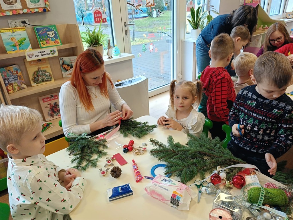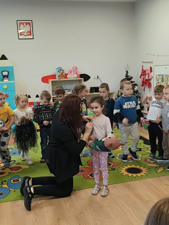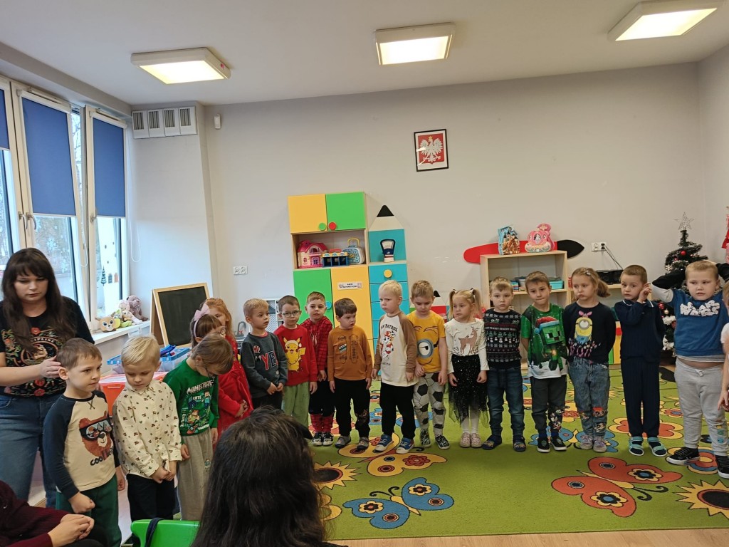 9 grudnia w naszej grupie odbyły się zajęcia otwarte, na które zaprosiliśmy rodziców. Miały one charakter świąteczny i wprowadziły nas w radosny okres oczekiwania na święta Bożego Narodzenia. Wspólnie rozmawialiśmy o świętach, wykonaliśmy świąteczne stroiki oraz kolędowaliśmy. Przy okazji, odbyło się również pasowanie nowych dzieci na Przyjaciela Misia Uszatka. Spędziliśmy razem cudowny czas.