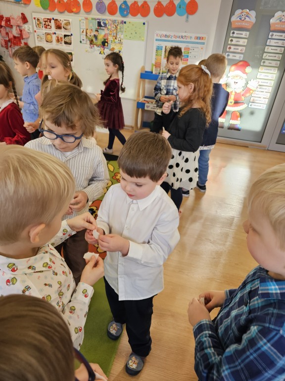 Przed nami najbardziej wyczekiwany czas - Święta Bożego Narodzenia. Z tej okazji grupa Sroczek przygotowała Jasełka. Było pięknie i wzruszająco. W środę odbyła się również grupowa wigilijka, podczas której podzieliliśmy się opłatkiem i złożyliśmy sobie życzenia. Były też prezenty :)