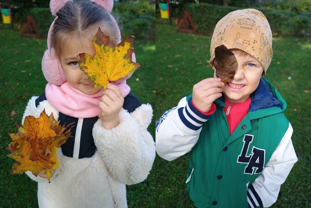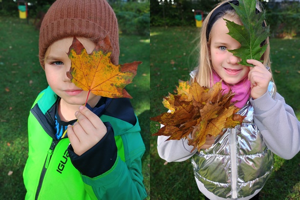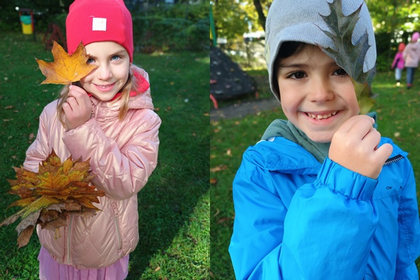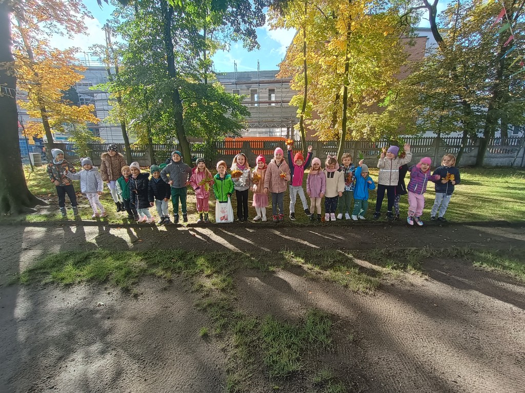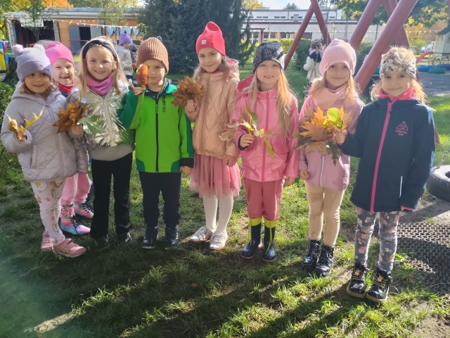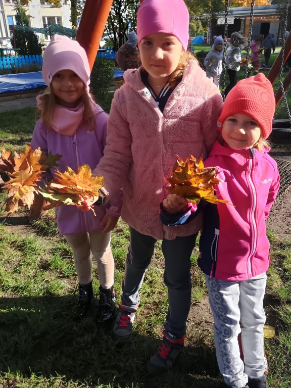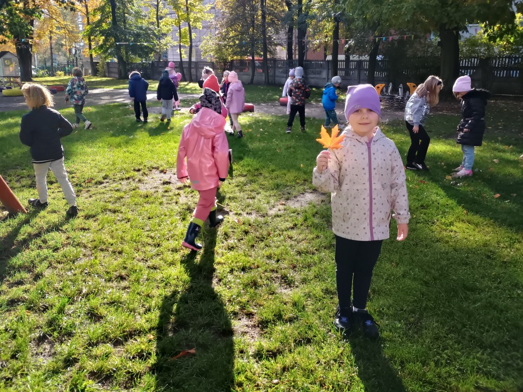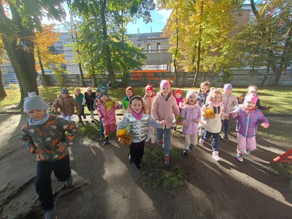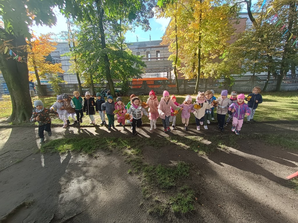Lato odeszło już w zapomnienie, a jesień na dobre zagościła w naszym przedszkolnym ogrodzie. Na szczęście na dworze jest jeszcze bardzo przyjemnie i słonecznie. Dlatego wykorzystaliśmy tę nastrojową aurę na zabawę na świeżym powietrzu. Wiadomo bowiem, że ruch jest nieodzownym elementem każdego dziecka oraz niezastąpionym sposobem na wyzwolenie energii, która w nich drzemie, szczególnie gdy mają do dyspozycji cały ogród przedszkolny i grupę kolegów. Przedszkolaki uwielbiają się bawić na placu zabaw, który budzi fantazję, zachęca do kontaktu z rówieśnikami, służy do pokonywania nowych wyzwań, a przede wszystkim do ruchu. Wszyscy uwielbiają zabawy na zjeżdżalni i huśtawkach. Są również tacy, którzy spacerują lub biegają po ogrodzie w poszukiwaniu kolorowych liści. Najlepszą obecnie zabawą dla dzieci stało się zbieranie liści i tworzenie pięknych jesiennych bukietów. Podczas właśnie takich zabaw ruchowych widać świetną integracje z rówieśnikami, uśmiech i energię. Dzieci mogą również doświadczać, obserwować przyrodę, a mając jeszcze szkło powiększające mogą zajrzeć w każdy zakamarek. Obserwowanie owadów, kory, listków...sprawia im dużo frajdy. Bo jesień to kolorowa i zjawiskowa pora roku.