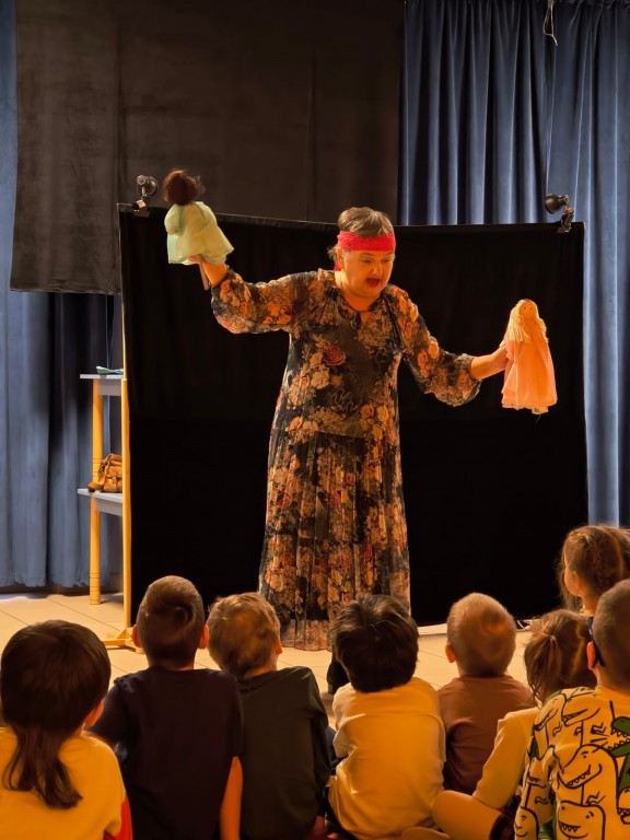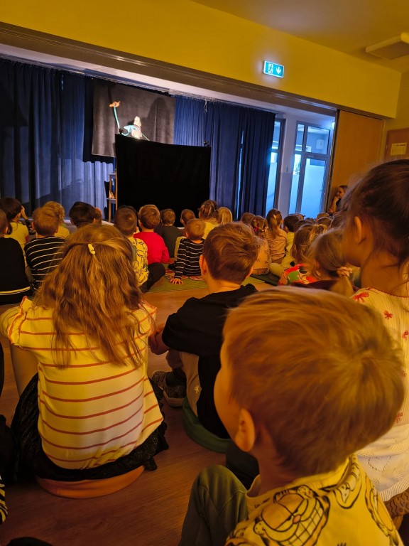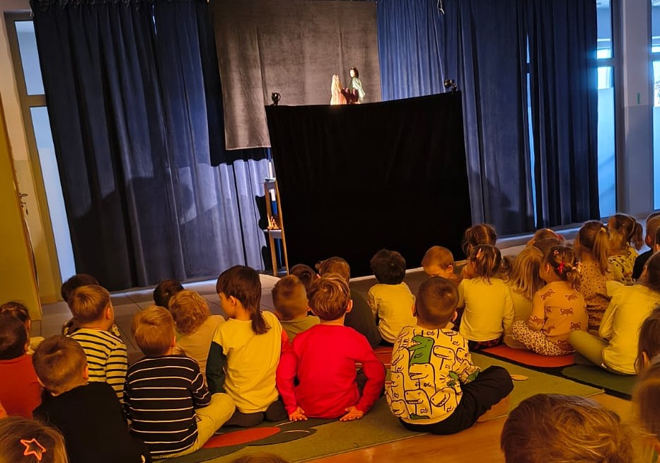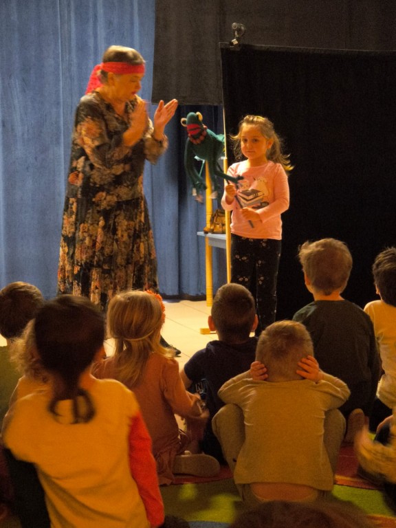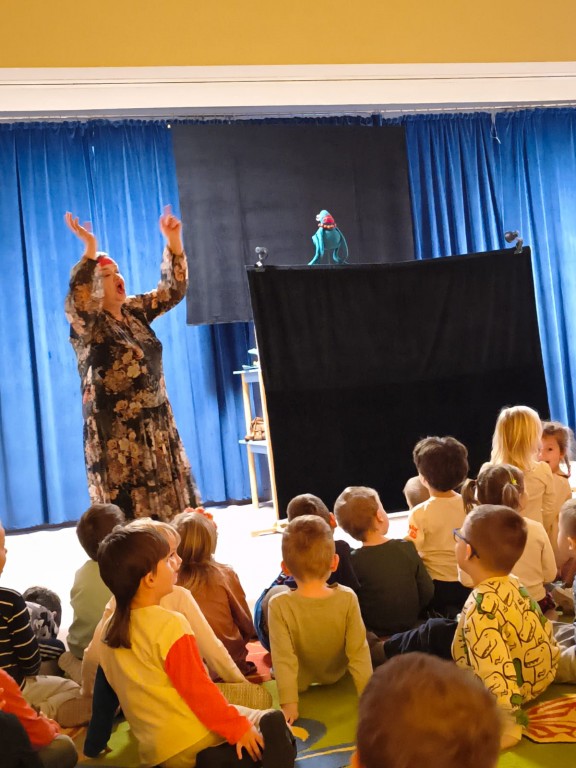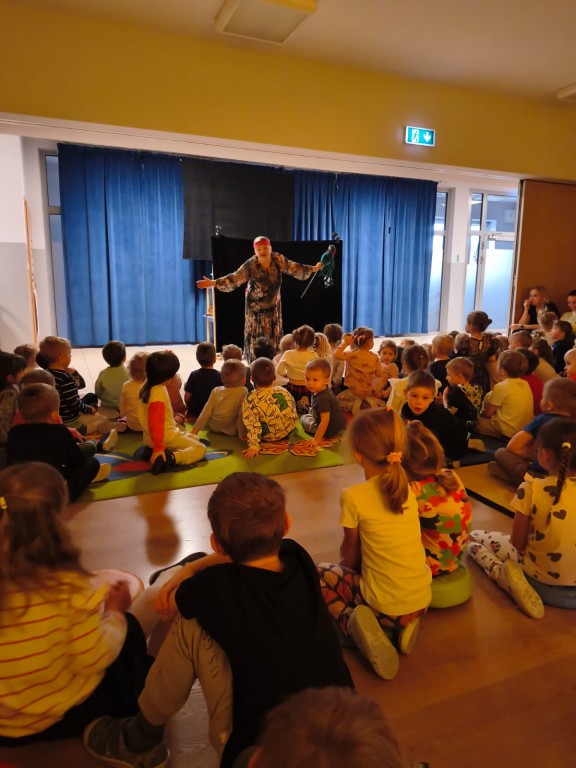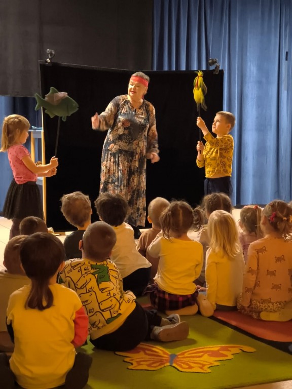 21 listopada w piątek gościliśmy w naszym przedszkolu Teatr "Ptak" z Bielska - Białej Pani Krystyny Popławskiej ze spektaklem pt.: „Calineczka”, w którym aktorami były marionetki. W swoim teatrze "Ptak" Pani Krystyna pełni rolę dyrektora, scenografa, kompozytora, aktorów, jak i reżysera. Pani Krystyna jest jedynym aktorem grającym wszystkie postacie w Calineczce. Chętne przedszkolaki zostały zaproszone na scenę i odgrywały poszczególne role. Po ciekawym przedstawieniu przedszkolaki miały możliwość poznać bliżej świat teatru, dowiedzieć się co to jest marionetka, scena, a także w jaki sposób aktor przygotowuje się do granego spektaklu. Dzieci były zadowolone, zadawały pytania, na które pani Krystyna cierpliwie odpowiadała.