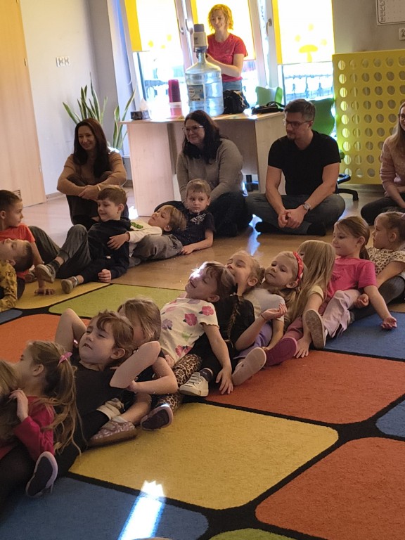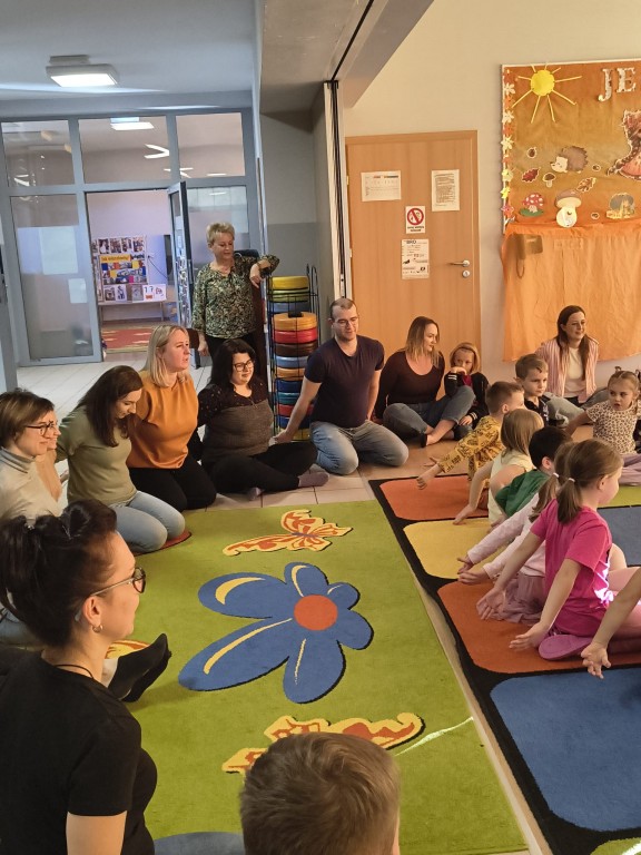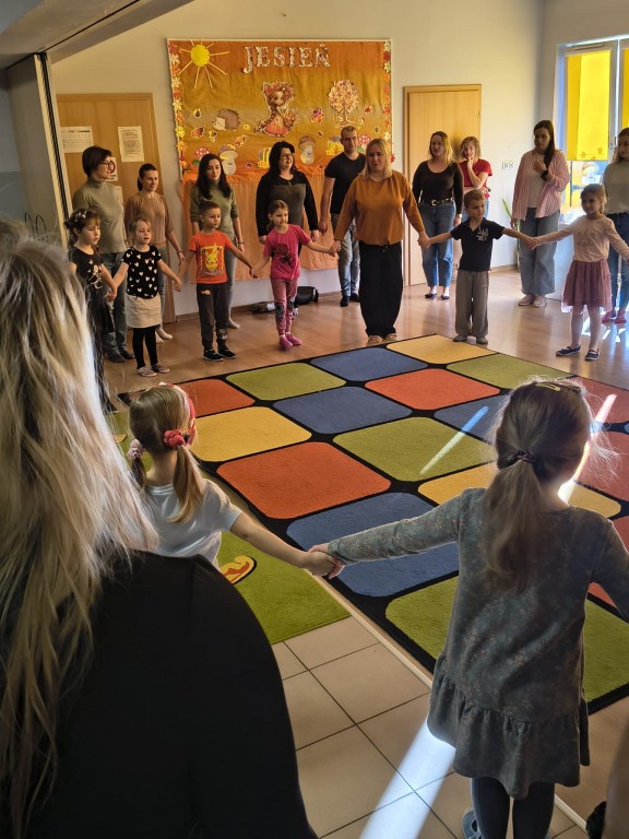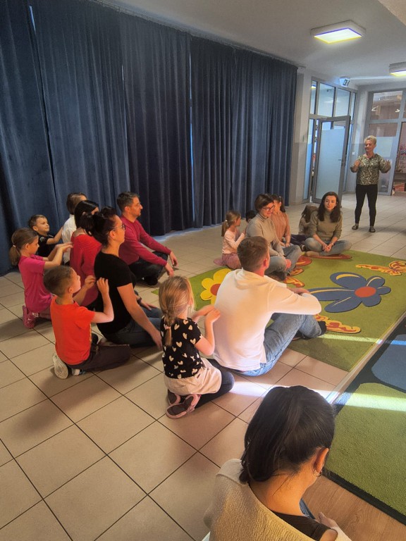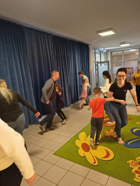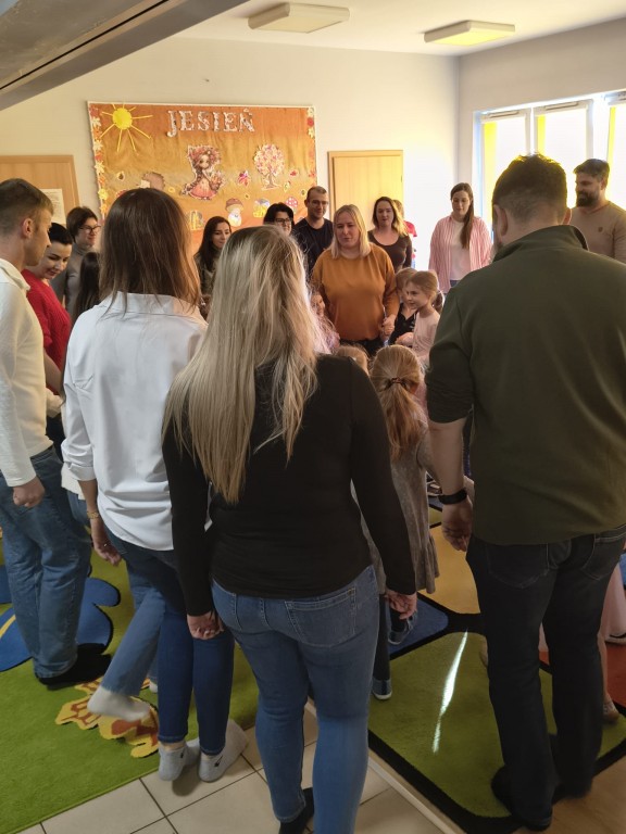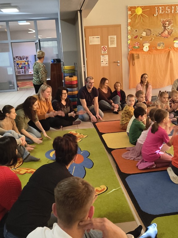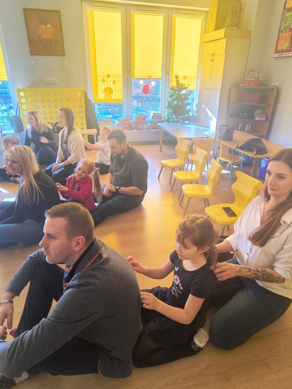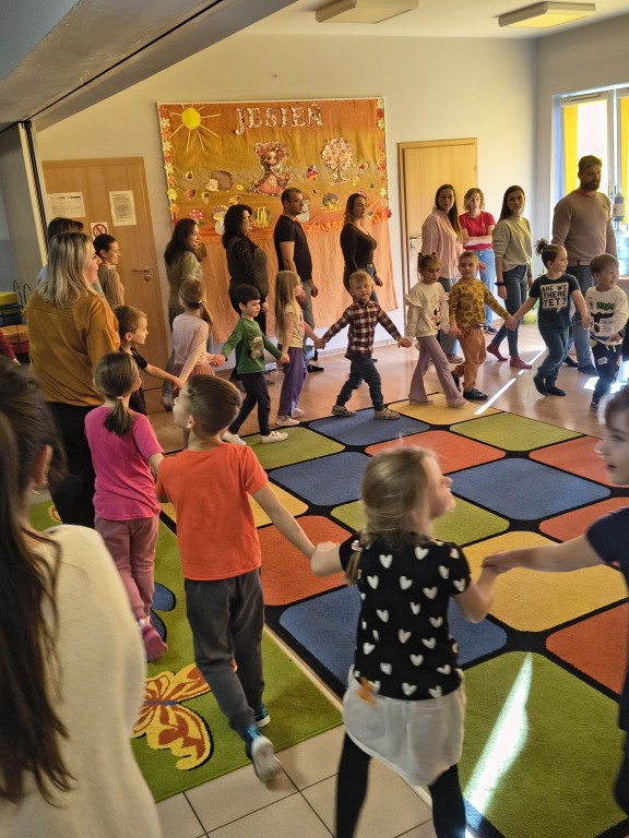 We wtorek 18 listopada w naszej grupie odbyły się zajęcie otwarte z udziałem rodziców. Zajęcia otwarte są jedną z form współpracy z rodzicami. Stanowią okazję do integracji środowiska przedszkolnego zarówno na linii rodzic – nauczyciel, jak również integracji wszystkich rodziców dzieci z tej samej grupy przedszkolnej, a także wzmacniania więzi pomiędzy dzieckiem, a rodzicem. Dzieci od samego rana z wielką niecierpliwością oczekiwały wizyty bliskich. W czasie zajęć dzieci zaśpiewały piosenkę o przedszkolu i szukały swoich imion na wizytówach, a wspólnie z rodzicami uczestniczyły w zabawach muzyczno-ruchowych przygotowanych przez Panią Bogusię i Panią Anię. Zabawy i radości było mnóstwo, a najszczęśliwsze tego dnia były dzieci, które mogły z rodzicami przyjemnie spędzić czas w przedszkolu.