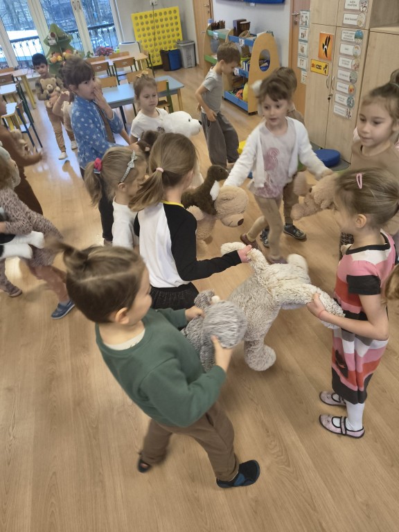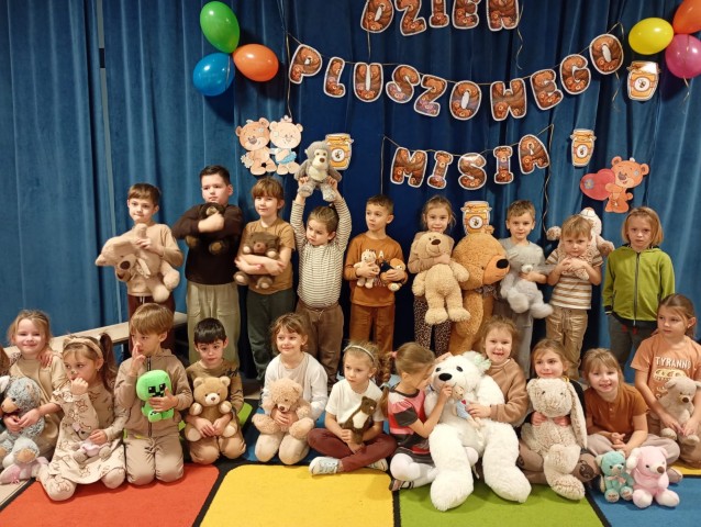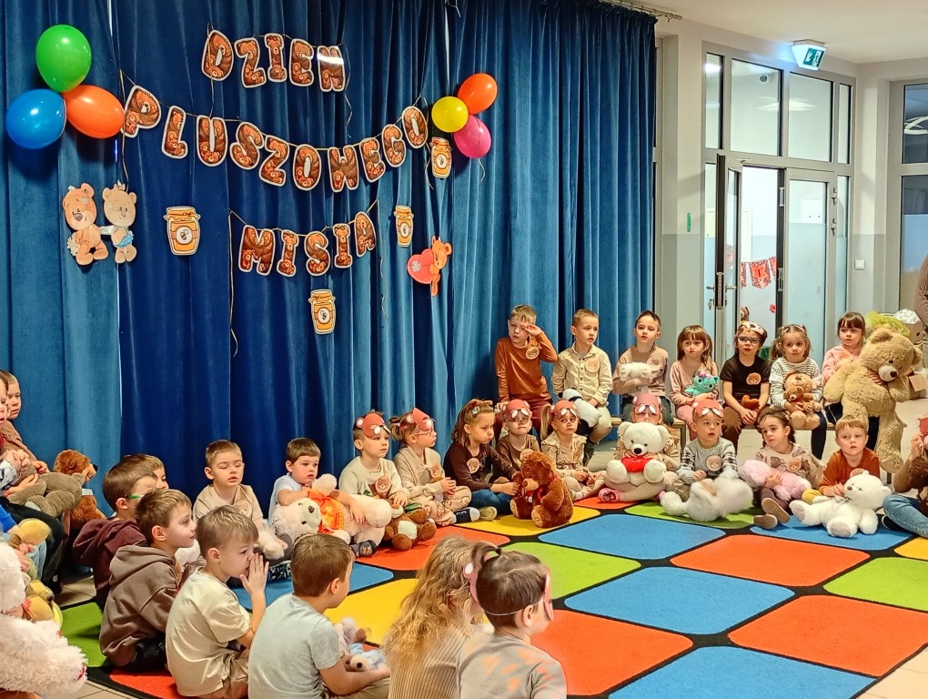 25 listopada swoje święto obchodził Pluszowy Miś – najmilsza zabawka, najlepszy przyjaciel dzieci i niezastąpiona przytulanka przy zasypianiu. W naszym przedszkolu Święto Pluszowego Misia obchodzone jest bardzo szczególnie. Tego dnia, każde dziecko przyszło do przedszkola ze swoim „milutkim” przyjacielem, by wspólnie z innymi celebrować te pełne radości chwile. Na dzieci i ich misie czekało wiele atrakcji. Sroczki podcas zajęć dydaktycznych poznały historię pluszowego misia, bawiły się przy misiowych piosenkach, uczestniczyły w zabawach. Sroczki miał okazji zobaczyć występ artystyczny w wykonaniu dzieci z grupy „Sówki” i „Koguciki”. Przedszkolaki również wykonały przepiękne prace plastyczne z misiem w roli głównej. Przygotowana przekąska na podwieczorek była dla dzieci wielką niespodzianką, dzieci skosztowały pysznego ciasta w kształcie misia.