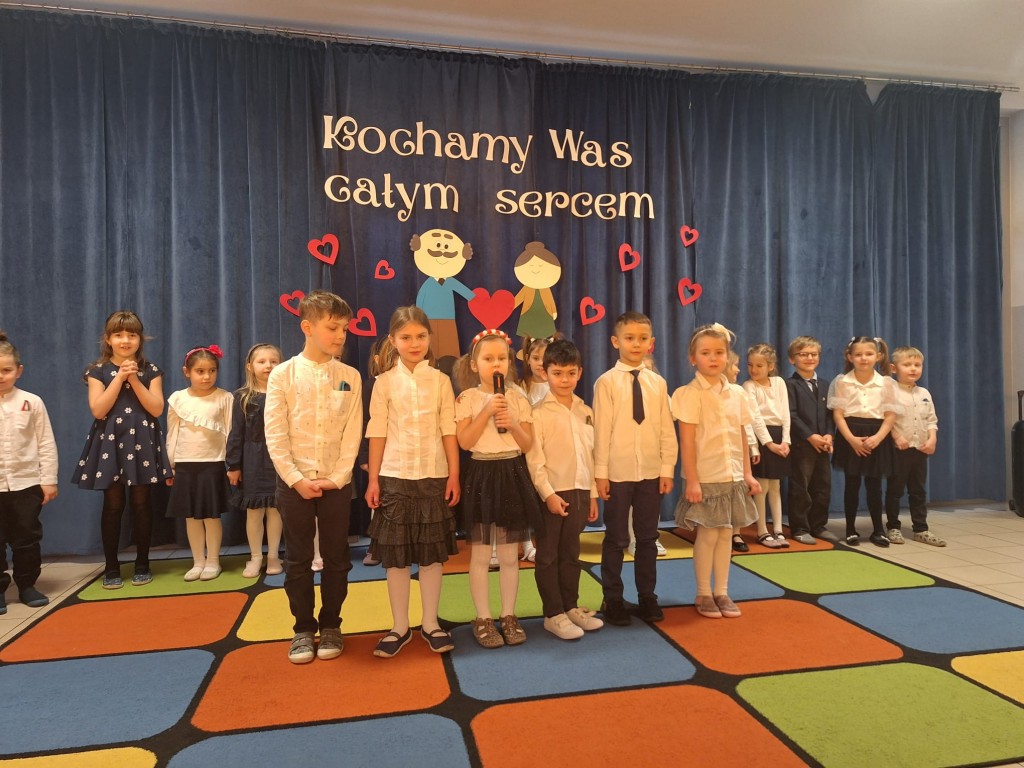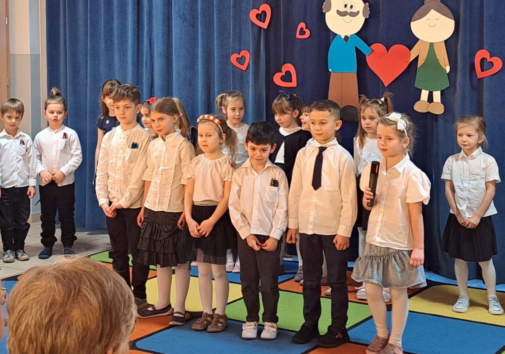 Babcia i Dziadek to słowa, które każdemu dziecku kojarzą się z ciepłem, miłością i wszystkim, co dobre. Dlatego dzieci gościły swoje Babcie oraz Dziadków na uroczystości z tej okazji, podczas której zaprezentowały wiersze, piosenki oraz taniec. Ten dzień był wyjątkowy, pełen uśmiechu, radości i niezapomnianych wrażeń. Szczęśliwe i rozpromienione twarze babć i dziadków dały wyraz tego, jak ważne są takie spotkania i chwile spędzone wspólnie z wnukami.
