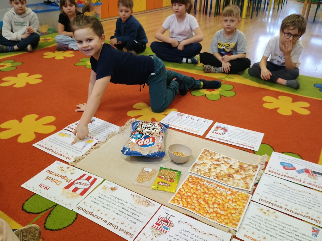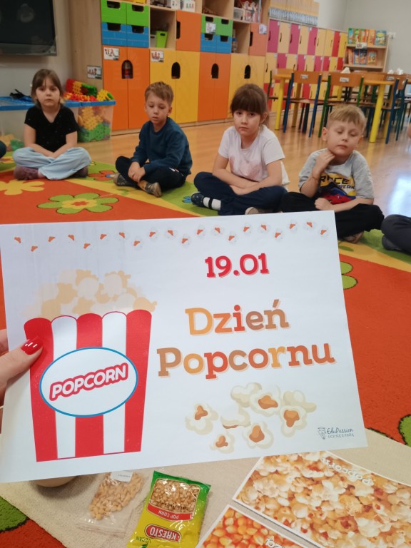 Zgodnie z kalendarzem świąt nietypowych światowy dzień popcornu przypada 19 stycznia. Od lat popcorn jest ulubioną przekąską podczas oglądania filmów, ale nie tylko - dzieci uwielbiają popcorn, dlatego Dzień Popcornu obchodziliśmy również w naszej grupie.