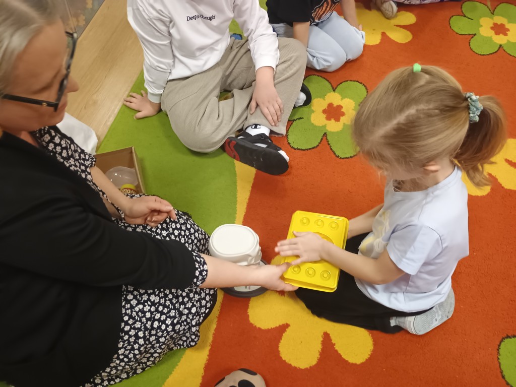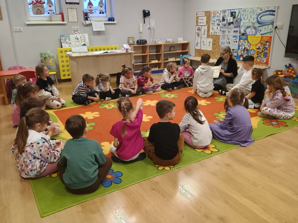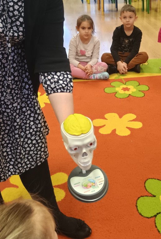 W środę 4 lutgo w naszej grupie odbyły się zajęcia z Panią Pedagog. Temat zajęć: "Co mi w głowie siedzi?". Celem zajęć było poznanie przez dzieci świadomości własnego ciała, a również przypomnienie zasad zdrowego odżywiania, które są niezbędne do prawidłowego funkcjonowania mózgu. Pani Pedagog przypomniała o odpowiedzialnści za to co robimy i za to co mówimy. Dzieci poznały funkcię ważnego narządu jakim jest mózg. Na zakończenie dzieci wykonały ćwiczenia relakcacyjne i otrzyamały w prezencie mandale do pokolorowania.