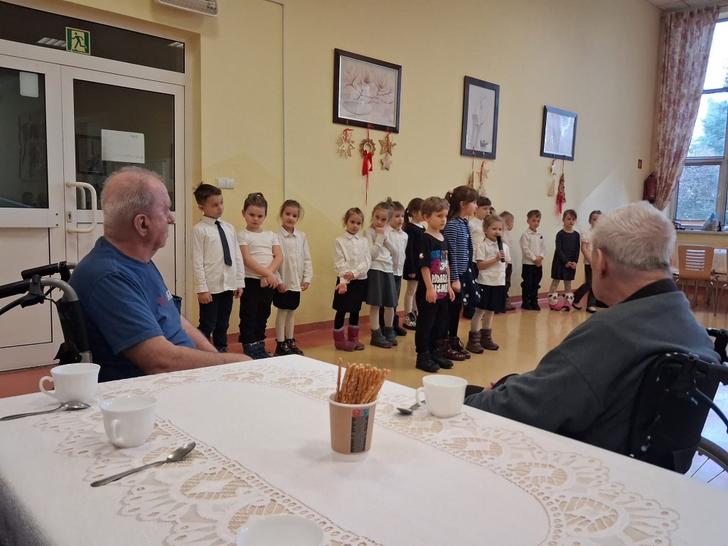 Do bardzo wzruszającego zdarzenia dwóch pokoleń doszło 27 stycznia br. Przedszkolaki z grupy Sroczki udały się do Domu Pomocy Społecznej w Rybniku. Dzieci zaprezentowały pensjonariuszom występ artystyczny przygotowany z okazji Dnia Babci i Dziadka. „Sroczki” z uśmiechami na ustach zaśpiewały piosenki, recytowały swe role i tańczyły. Swoim występem wzbudziły zachwyt i wzruszenie u najstarszego pokolenia naszego miasta. Ze strony seniorów padły gorące podziękowania za udane przedstawienie, dające satysfakcję i wykonawcom, i podopiecznym DPS-u. Przedszkole od wielu lat organizuje wspólne przedsięwzięcia z Domem Pomocy Społecznej, ponieważ uczą one dzieci szacunku do starszych osób i wrażliwości na potrzeby drugiego człowieka.