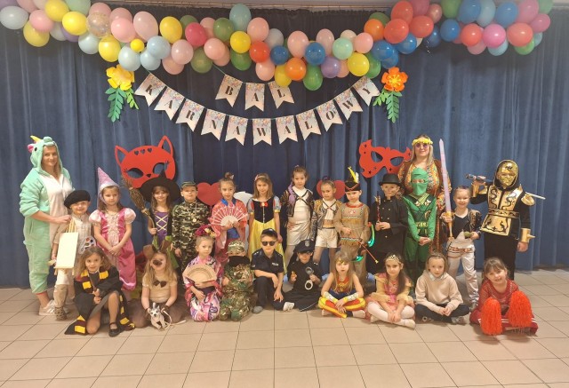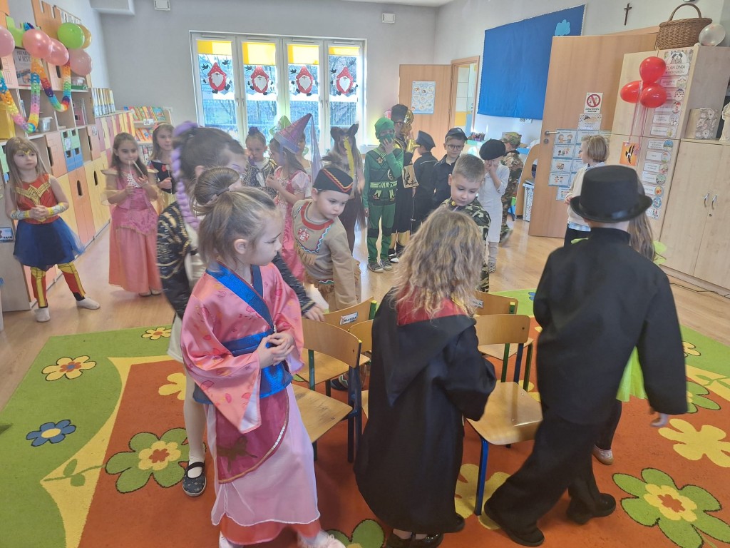 Na balu pojawiły się niezwykłe postacie – księżniczki, super bohaterowie, zwierzątka, postacie z bajek i wiele innych kreatywnych strojów, które zachwycały pomysłowością. Dzieci z dumą prezentowały swoje przebrania, a uśmiechy nie schodziły z ich twarzy.