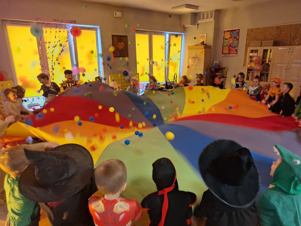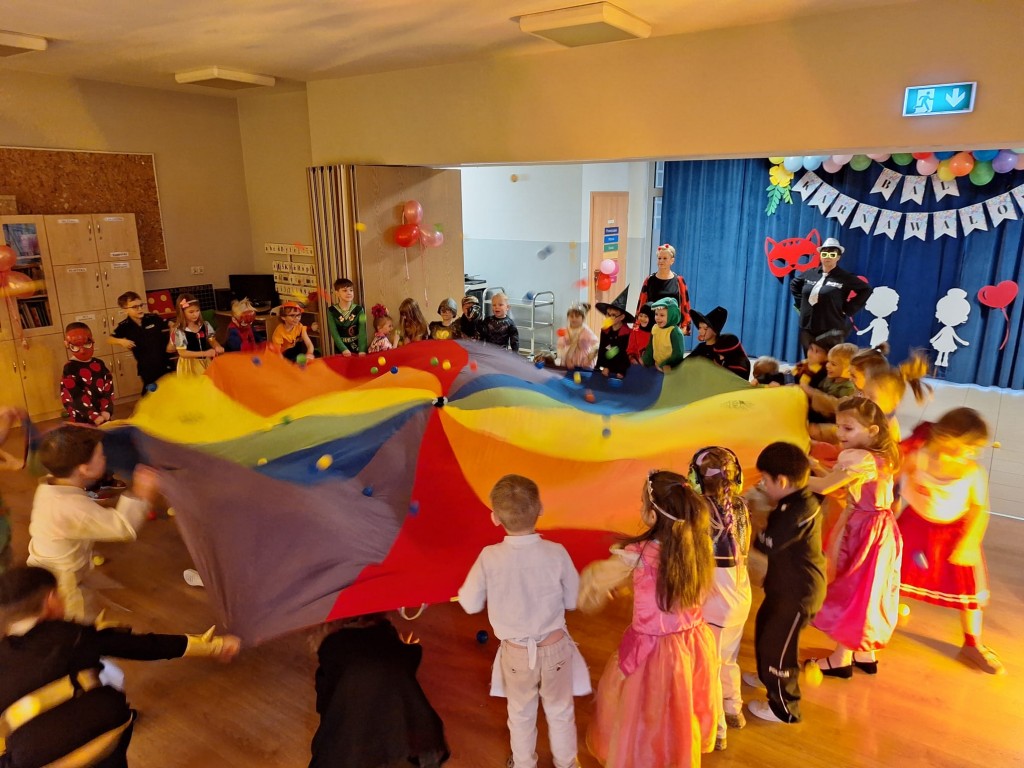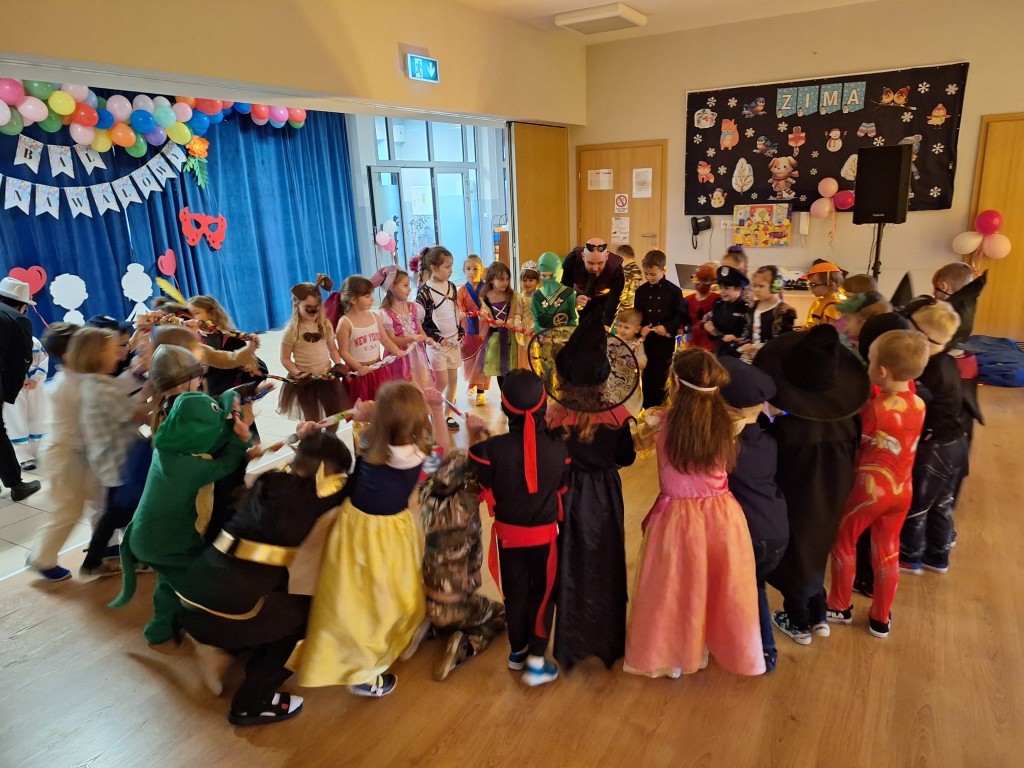 W piątek, 13 lutego 2026 r., w naszym przedszkolu odbył się długo wyczekiwany bal karnawałowy – bal przebierańców. Sala przedszkolna zamieniła się w magiczne miejsce pełne kolorowych dekoracji, balonów i świateł, które wprowadziły dzieci w wyjątkowy, radosny nastrój.