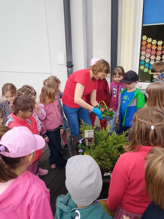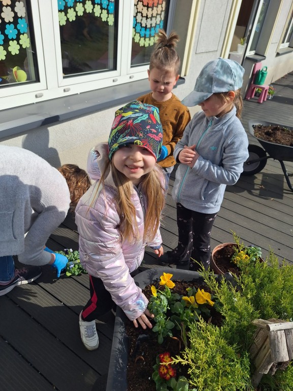 Wspólna praca sprawiła wszystkim wiele radości, a efekty można już podziwiać przed naszym przedszkolem. Kolorowe kwiaty nie tylko ozdabiają przestrzeń, ale także uczą dzieci odpowiedzialności i troski o przyrodę.