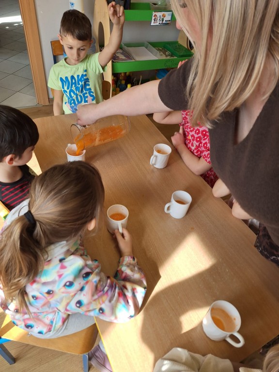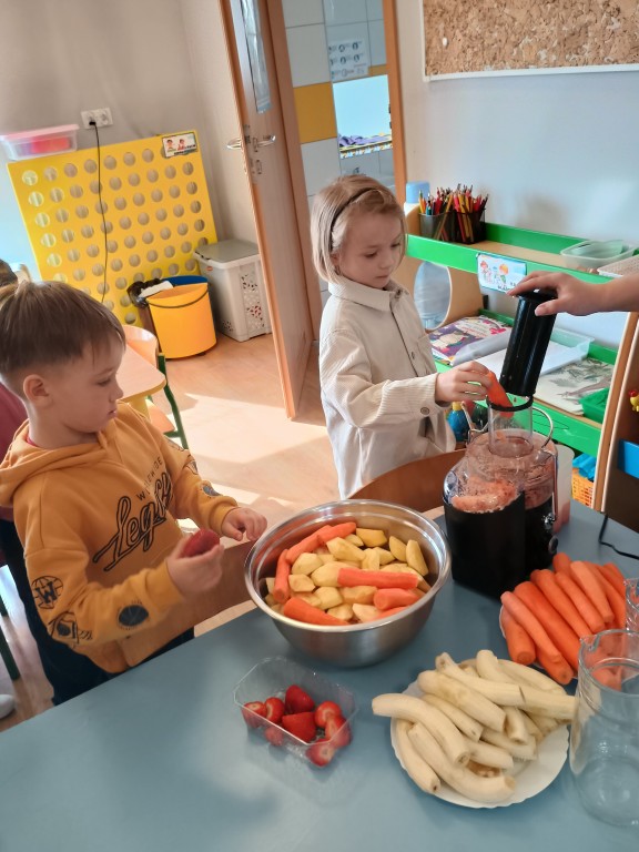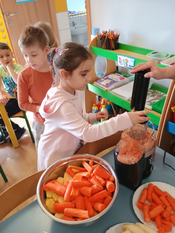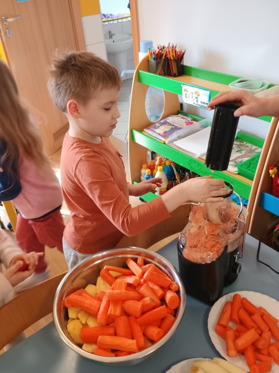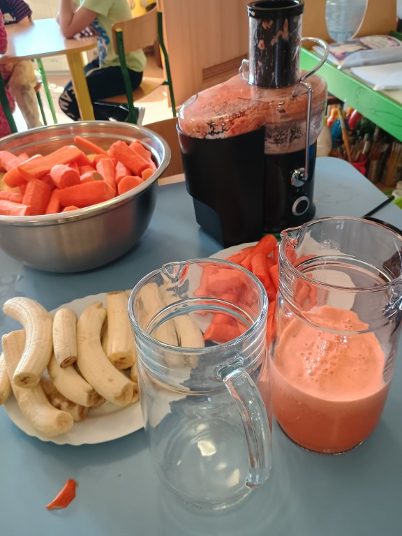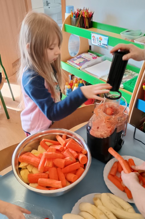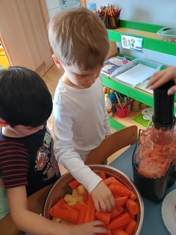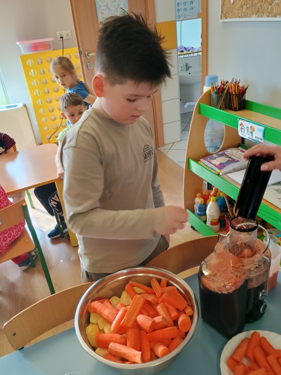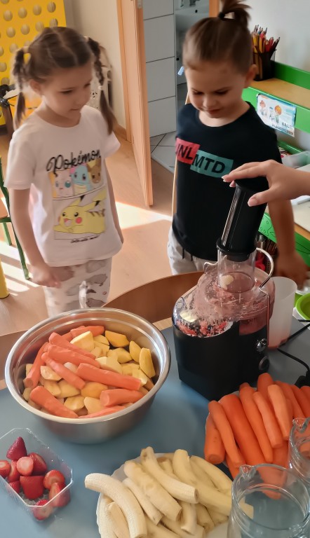 Wszyscy dobrze wiedzą jakie bogate w witaminy są soki owocowe. Warto pomóc dziecku polubić je. Soki to nie tylko doskonałe źródło witamin i cennych składników, ale pyszniejsze są niż słodycze. Przekonaliśmy się o tym podczas robienia i picia soku warzywno-owocowego.